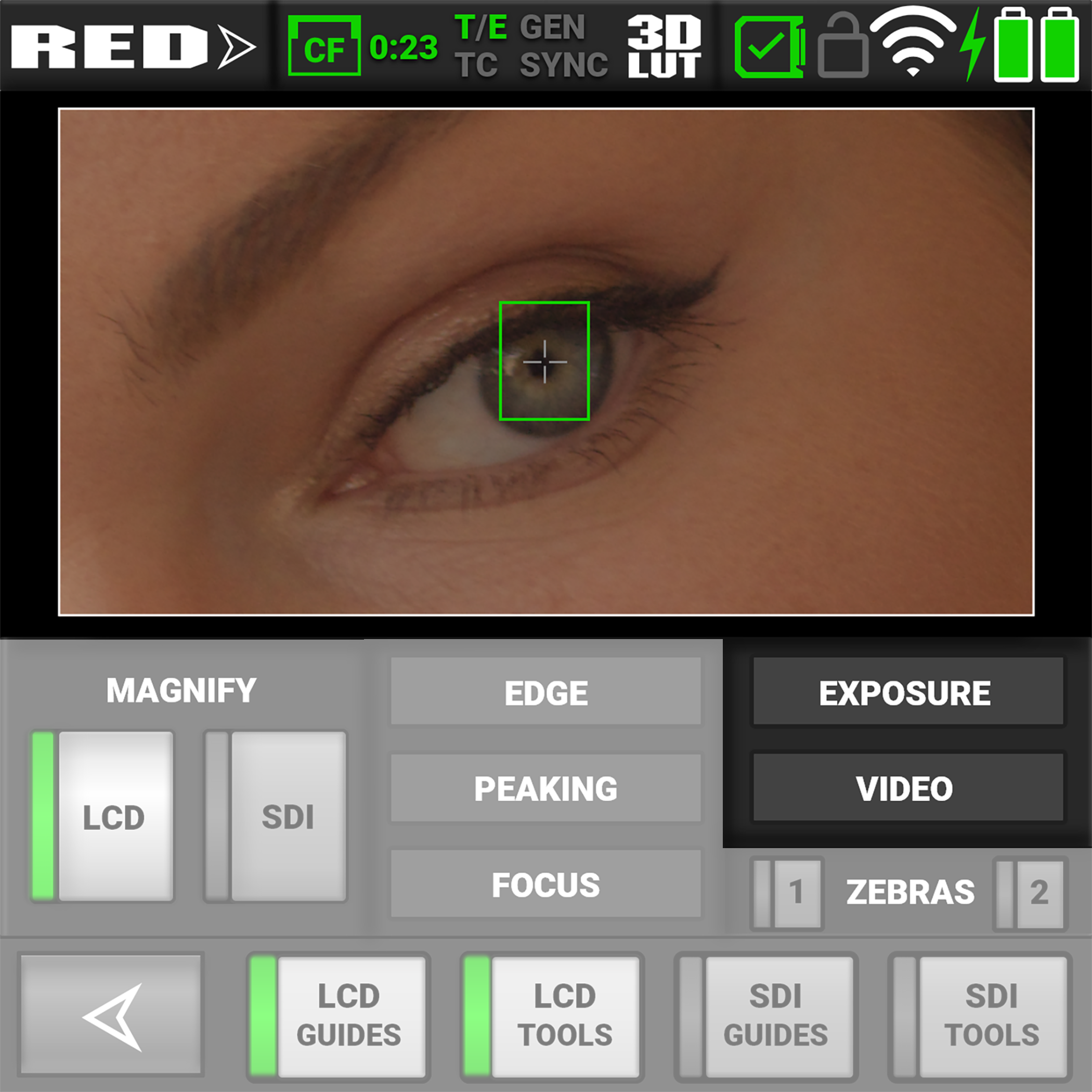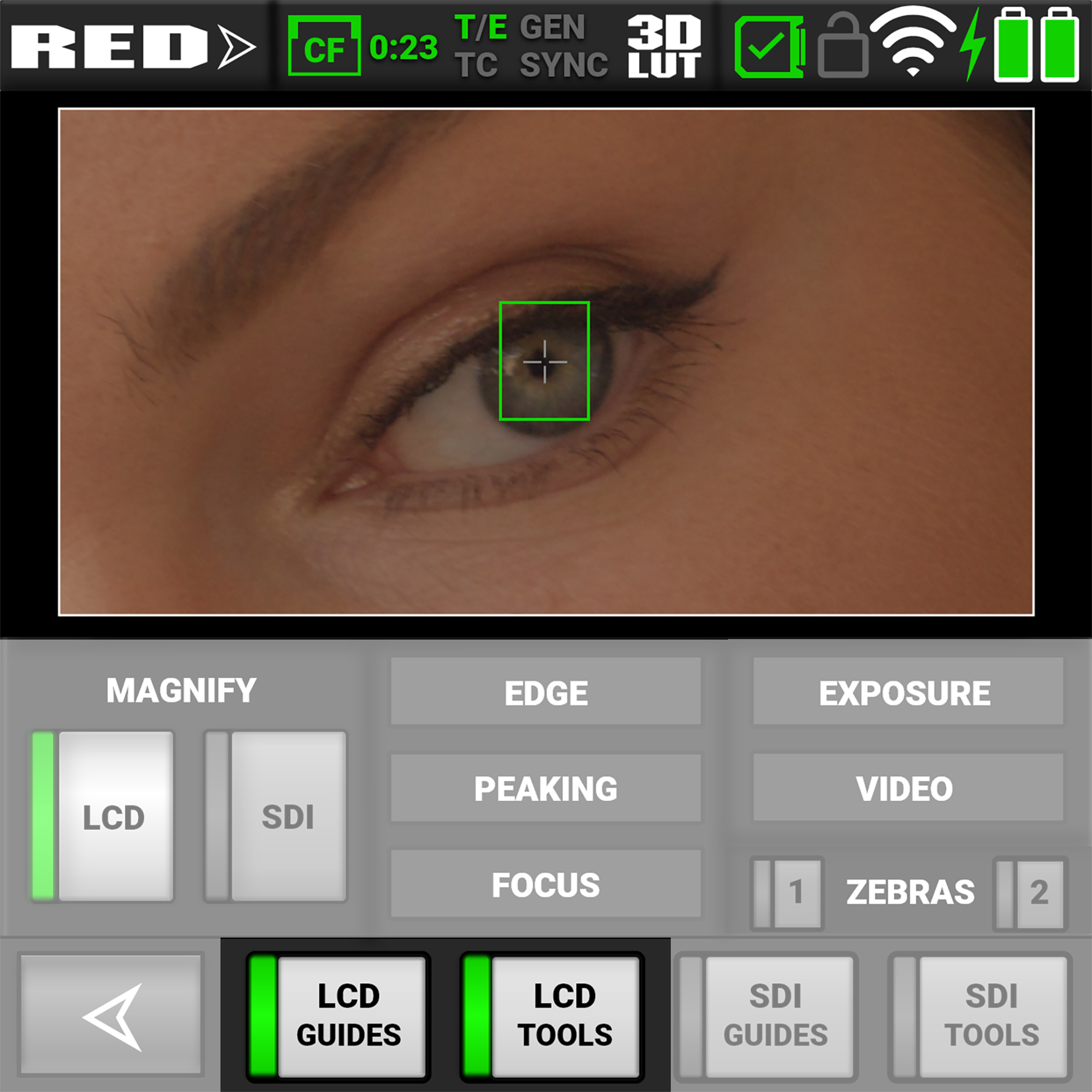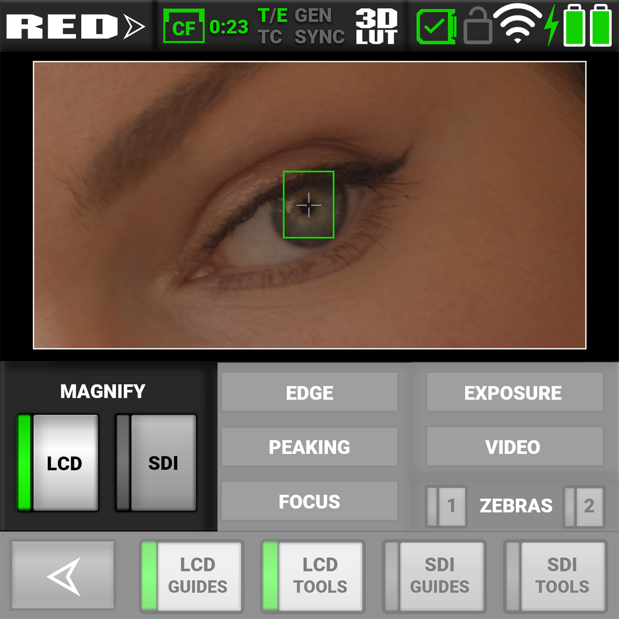 The Magnify section allows you to enable or disable magnification on the camera LCD and the SDI monitor output.