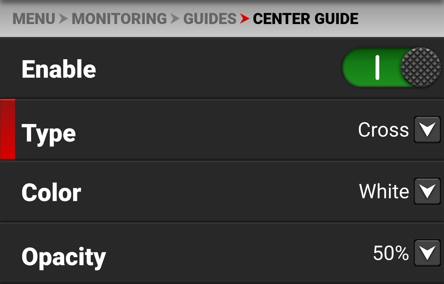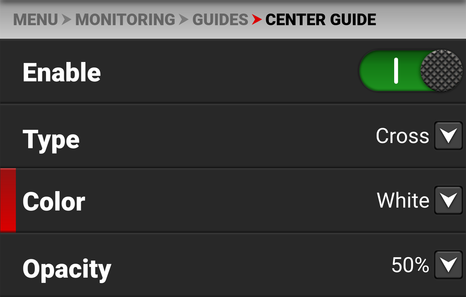 Enables the Center Guide |
