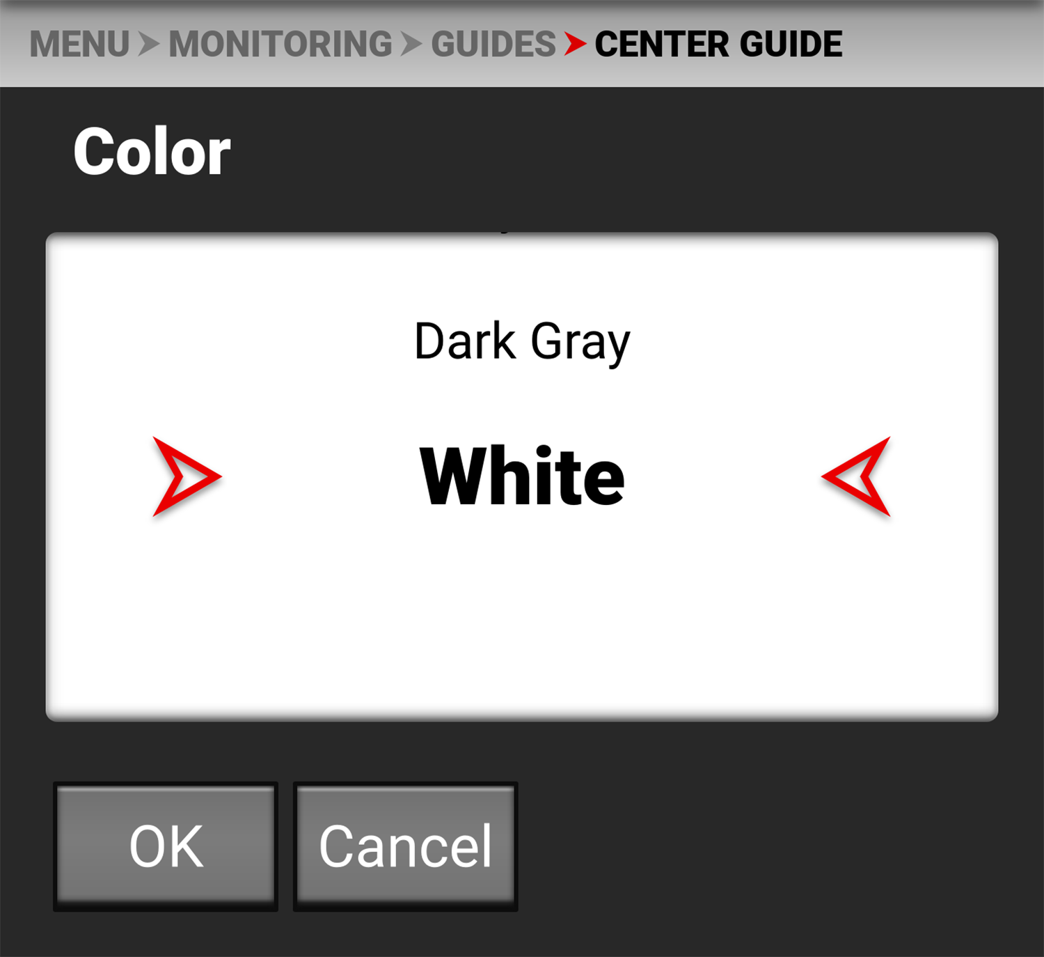 Use Color to select one of the following colors for the Center Guide: