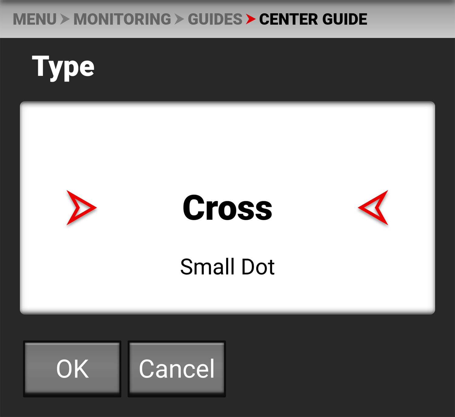 Use Type to select a center dot or cross (default) for the Center Guide.