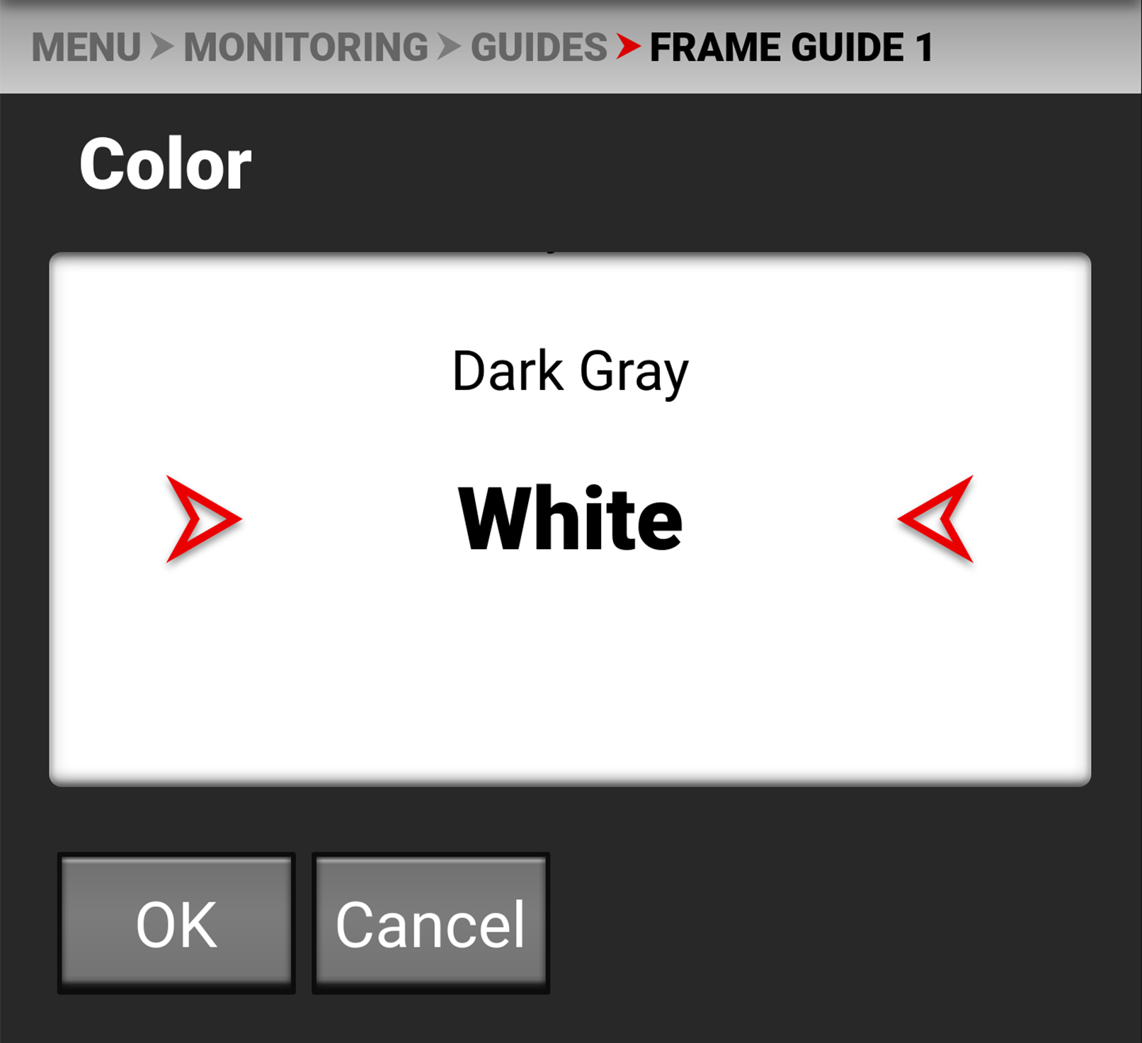 Use Color to select one of the following colors for the Frame Guide: