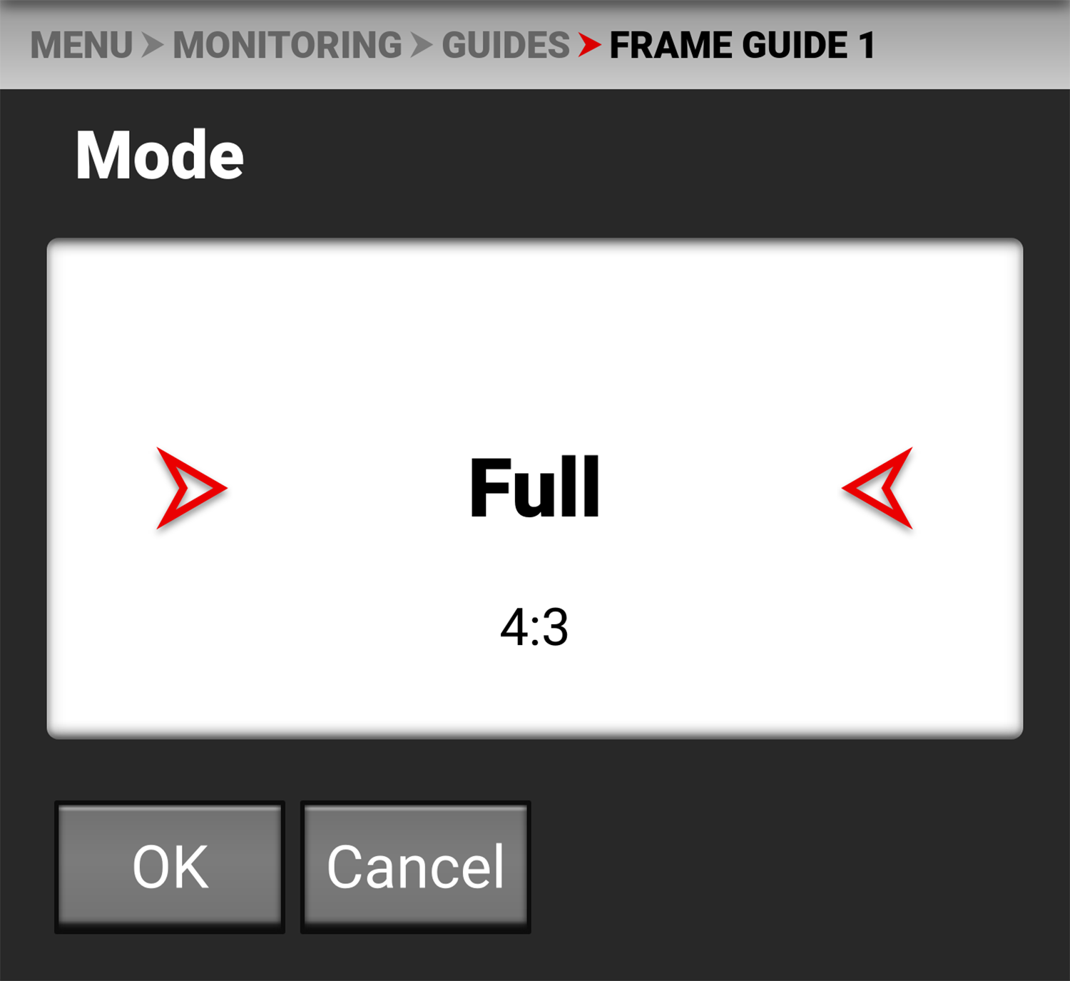 Use the keypad to enter the percentage of offset from center you want to apply to the Frame Guide.