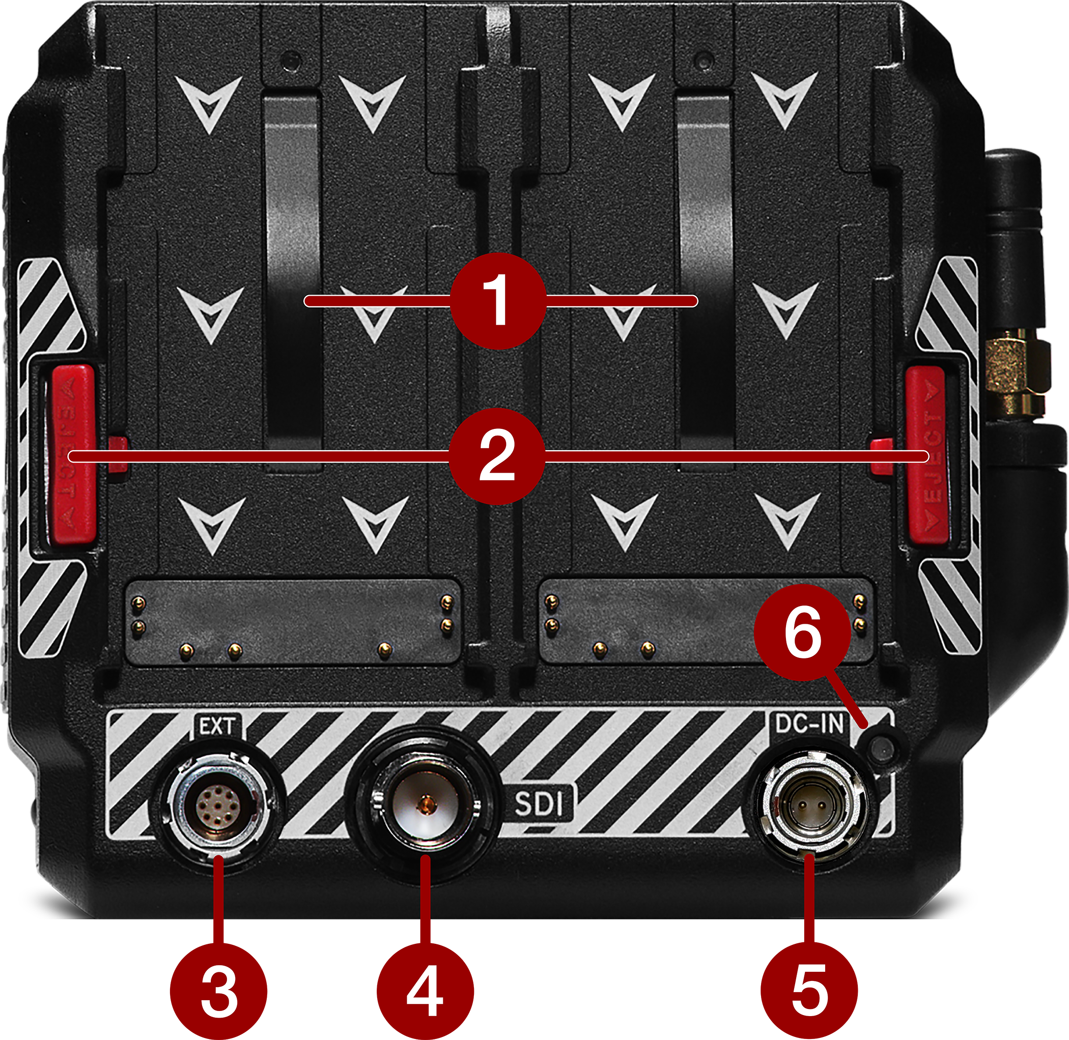 Connection port for accessories (refer to KOMODO Outrigger Handle) |