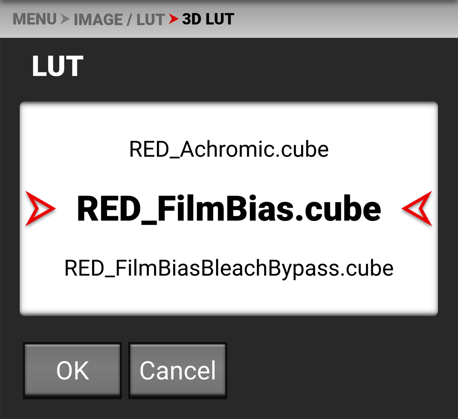 - Go to MENU > IMAGE / LUT > 3D LUT > LUT.