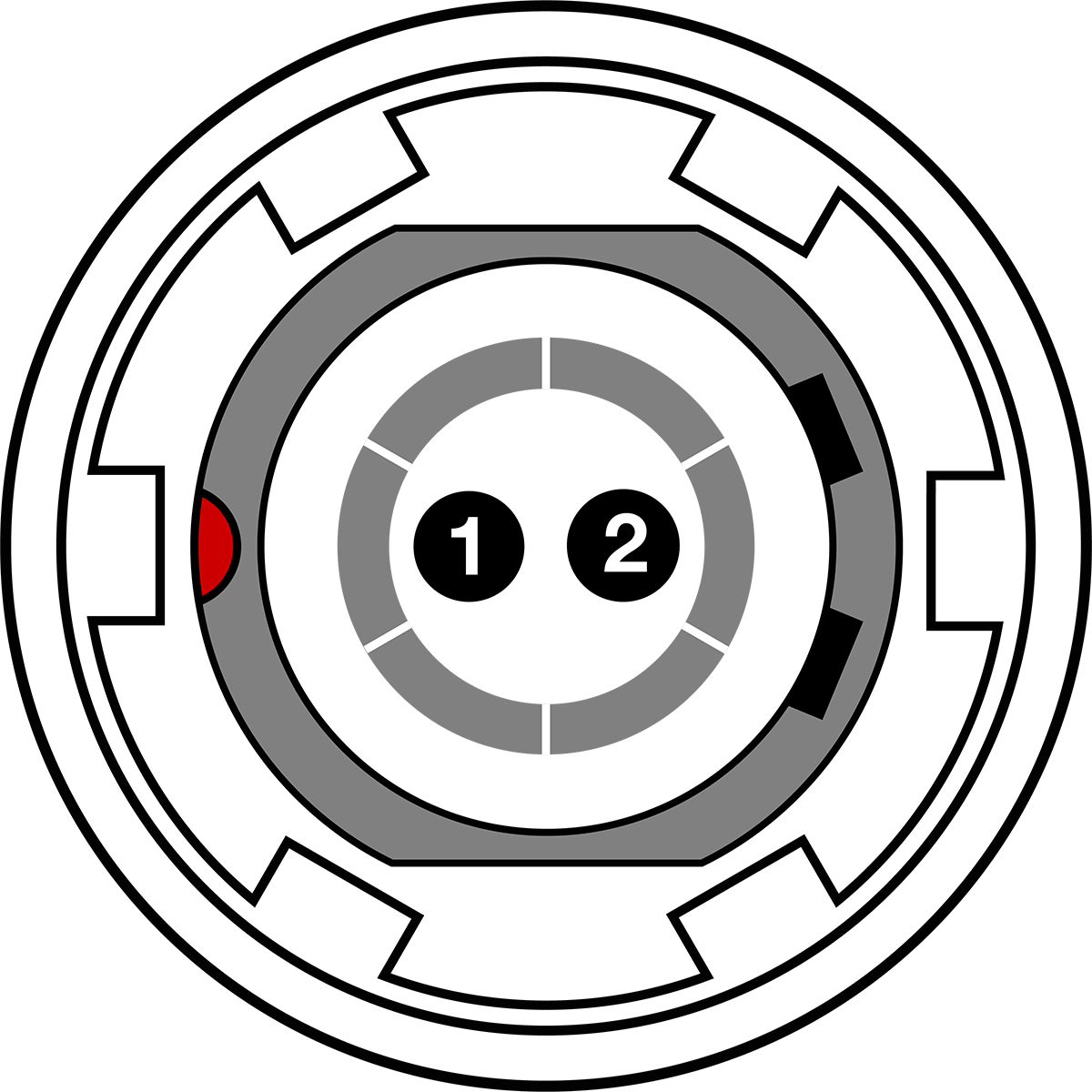 NOTE: The required mating connector is a 2-Pin 0B Straight Plug Connector (ODU, part# SX0LCX-P02LJG0-0001).