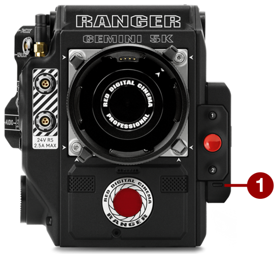 This section describes the controls, buttons, and features on the RED RANGER GEMINI camera body. For information on the input/output connectors, go to Input/Output Connectors.