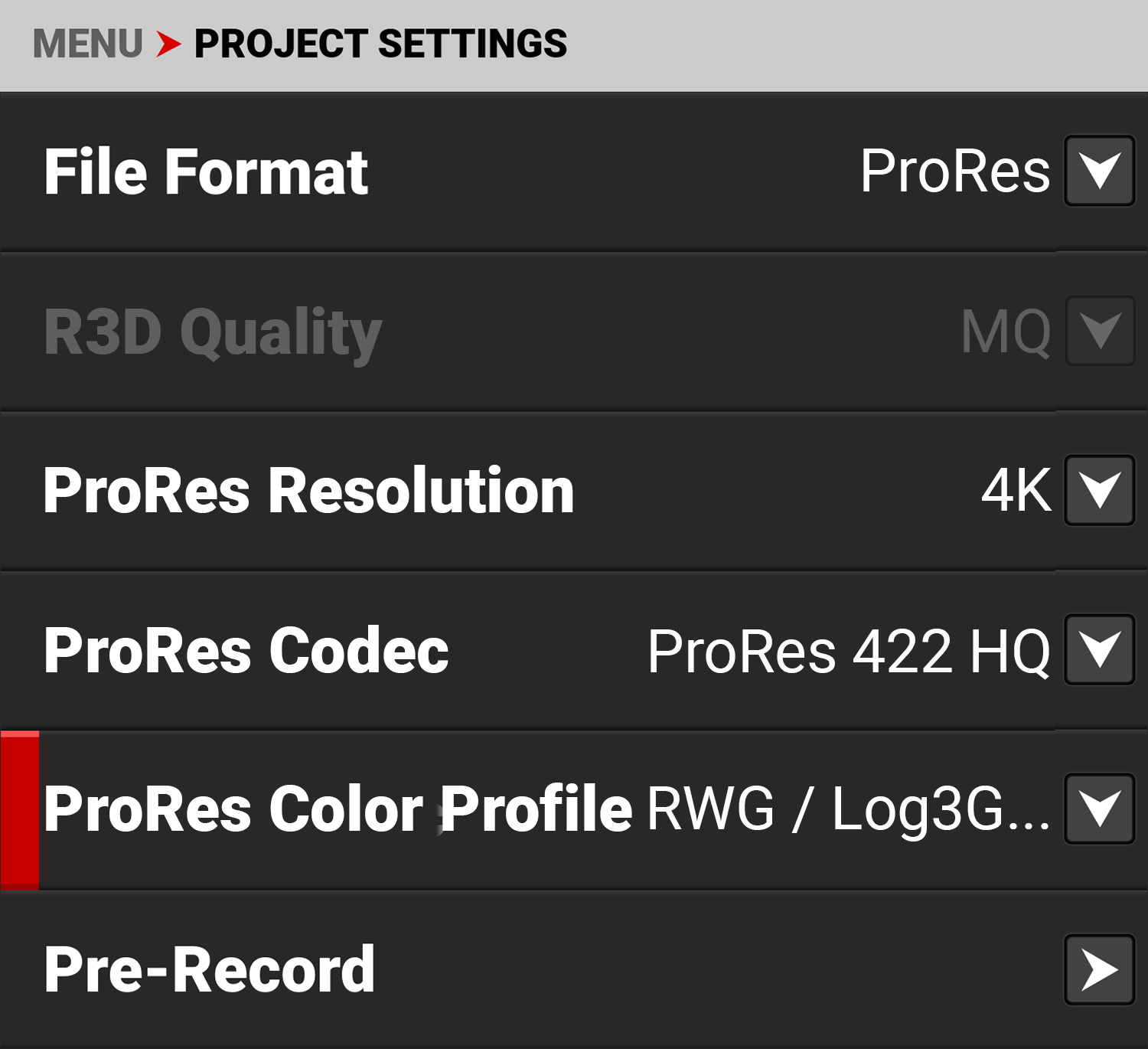 NOTE: All ProRes Color Profile settings bake in both the ISO and the White Balance settings.