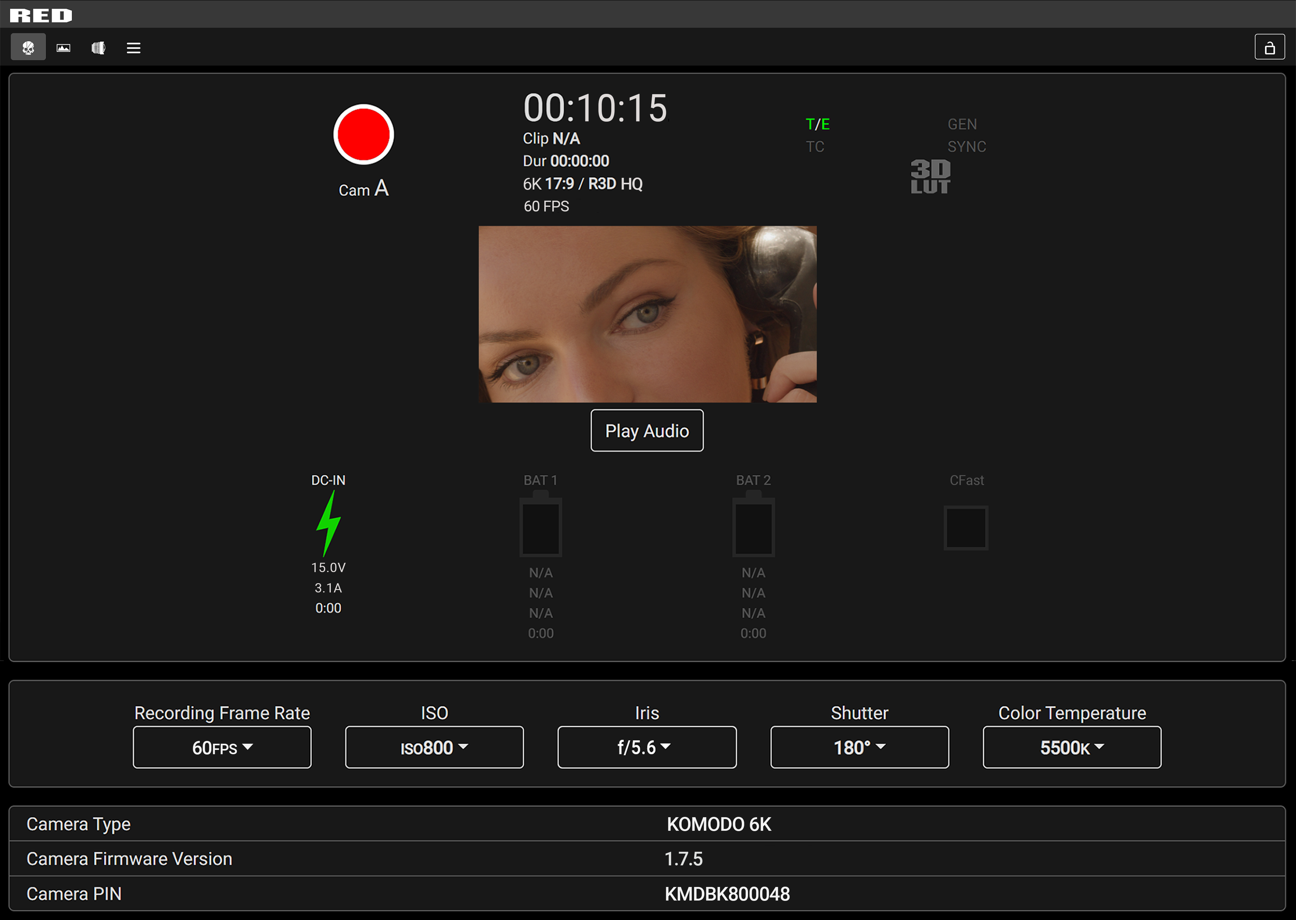RED Control allows you to use Wi-Fi to connect to the camera and send monitor images to iOS and Android devices.