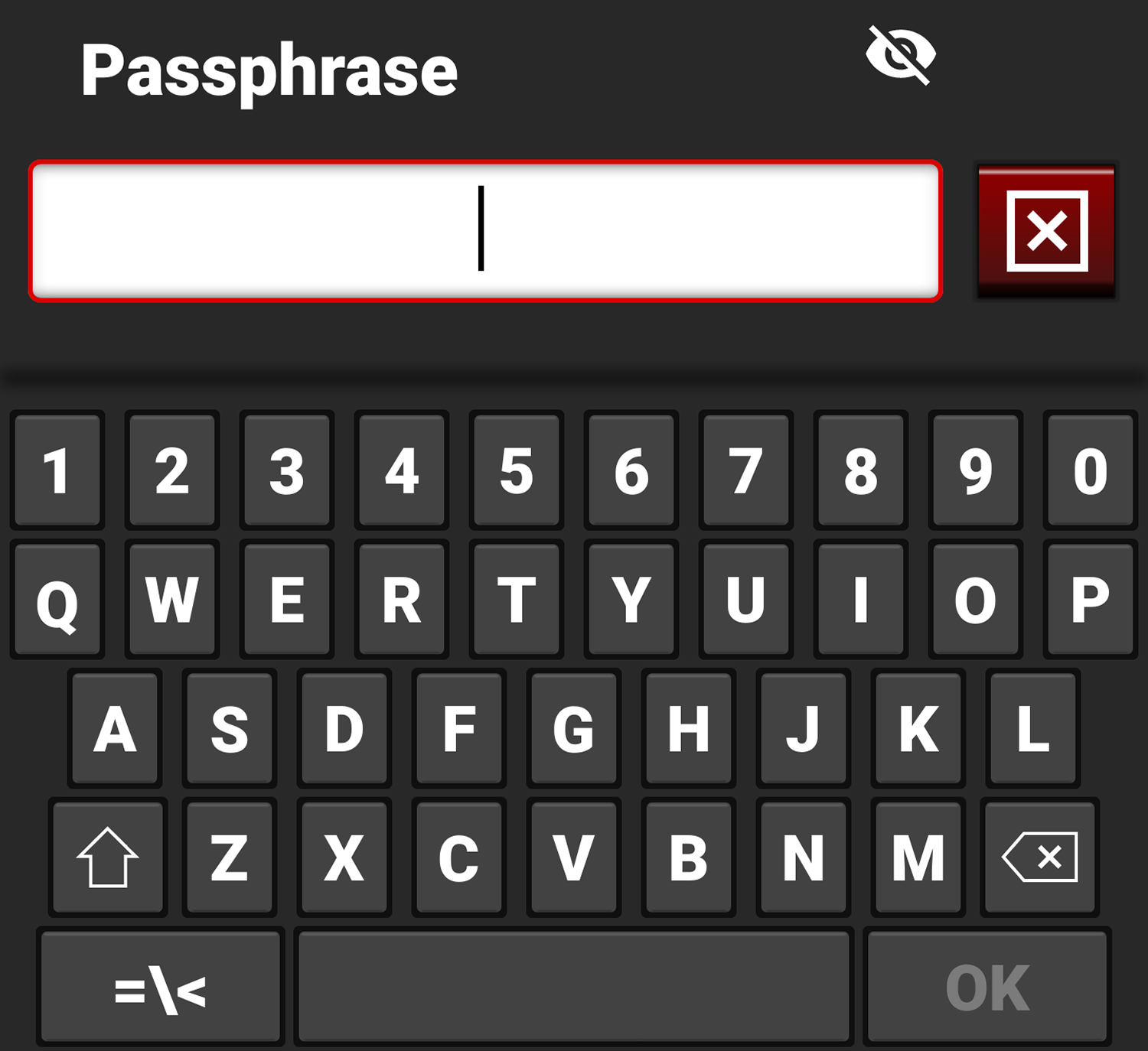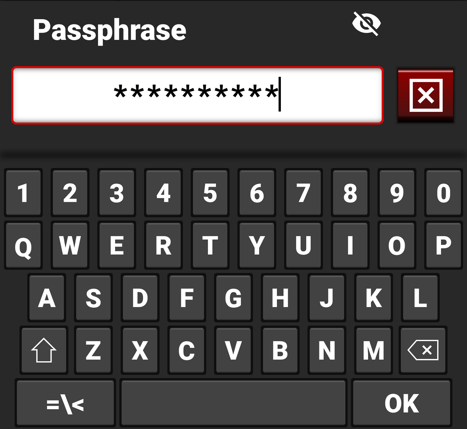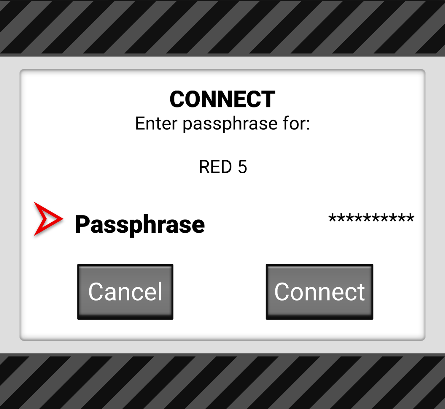 - Tap OK on the completed Passphrase entry screen. The completed CONNECT screen displays.