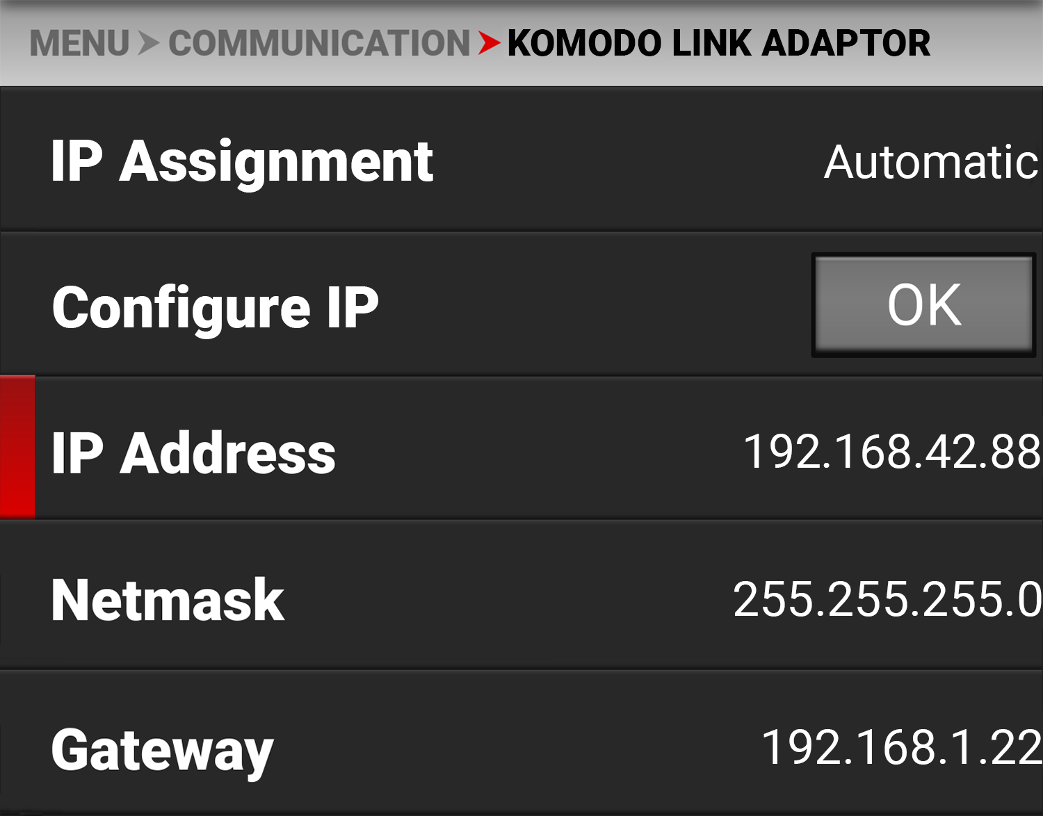 - Navigate to the KOMODO Communication menu and select KOMODO Link Adaptor.