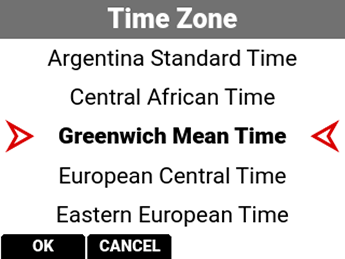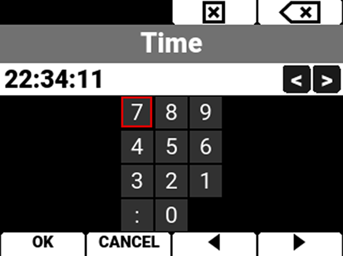 Navigate to Time and press SEL to enter the time in 24 hour military format using the keypad: