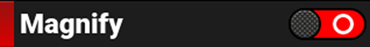 Use Magnify to enable or disable the magnification of the output image. You can enable and disable magnification by pressing SEL to toggle Magnify to the right (green / enabled) and to the left (red / disabled).