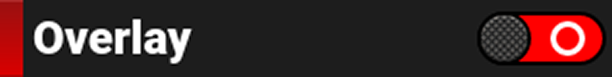 Use Overlay to enable or disable the viewing of the overlay. You can enable and disable the overlay by pressing SEL to toggle Overlay to the right (green / enabled) and to the left (red / disabled).