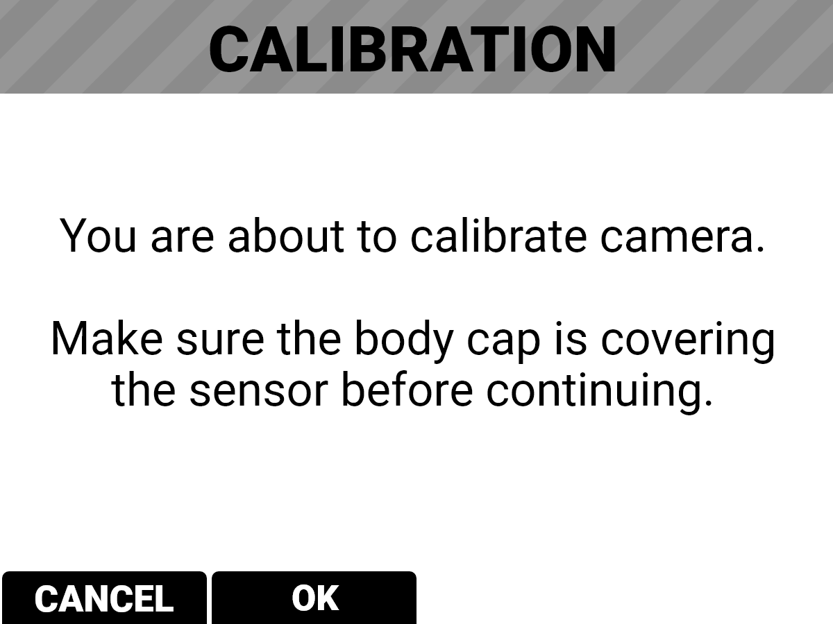Only calibrate the camera after it has reached its operational temperature. This occurs usually within ten minutes after you turn on the camera in the filming environment. Do not calibrate immediately after powering on.