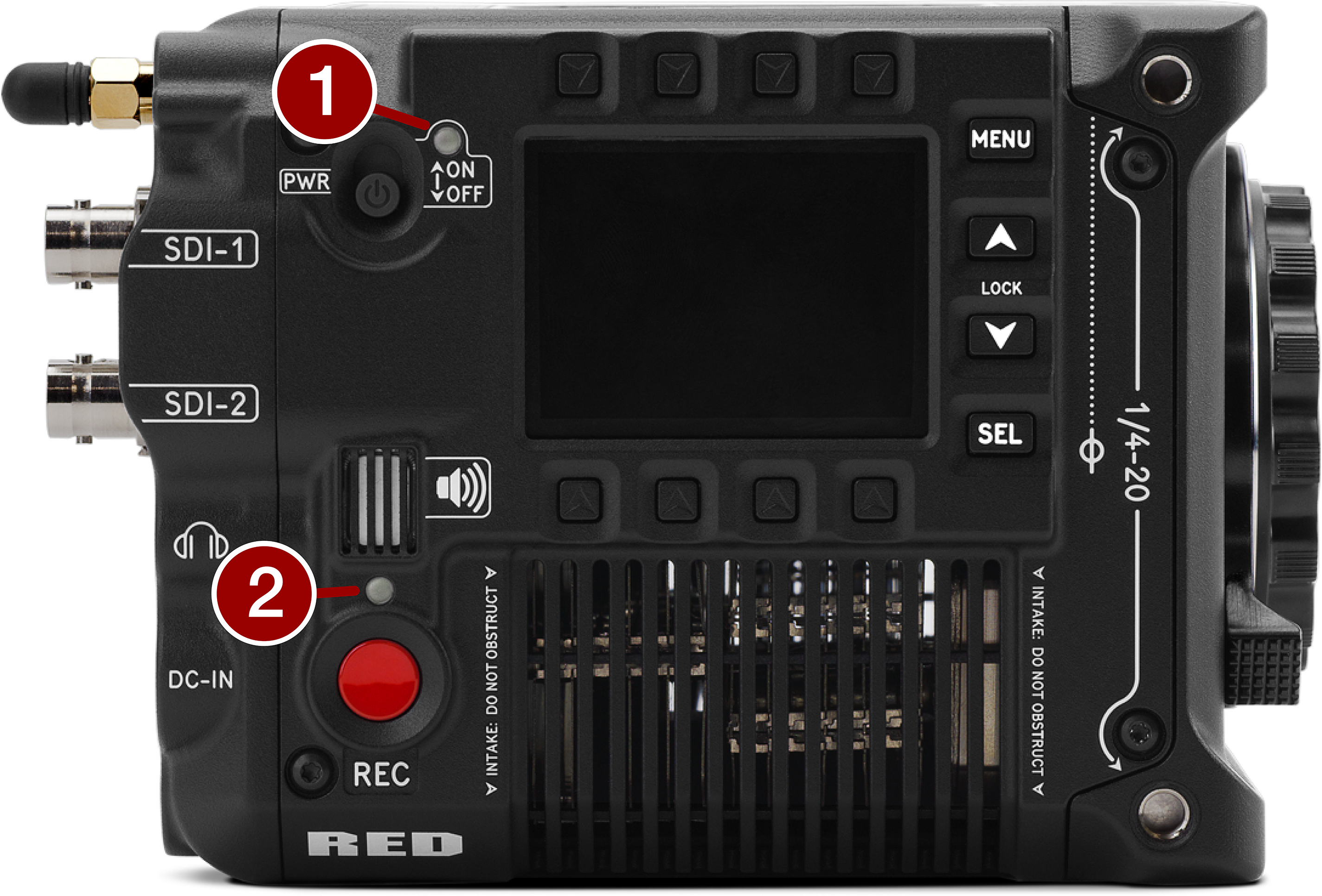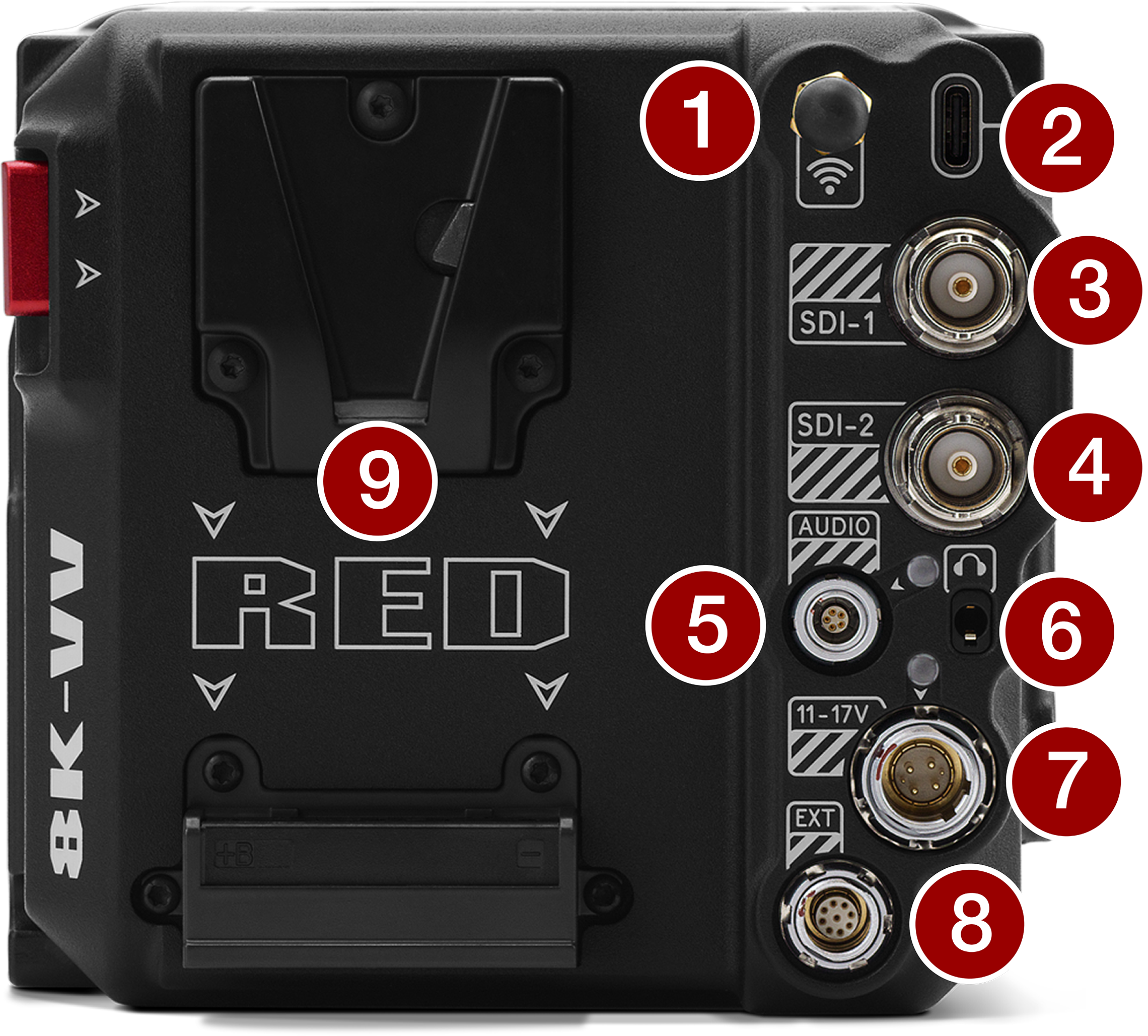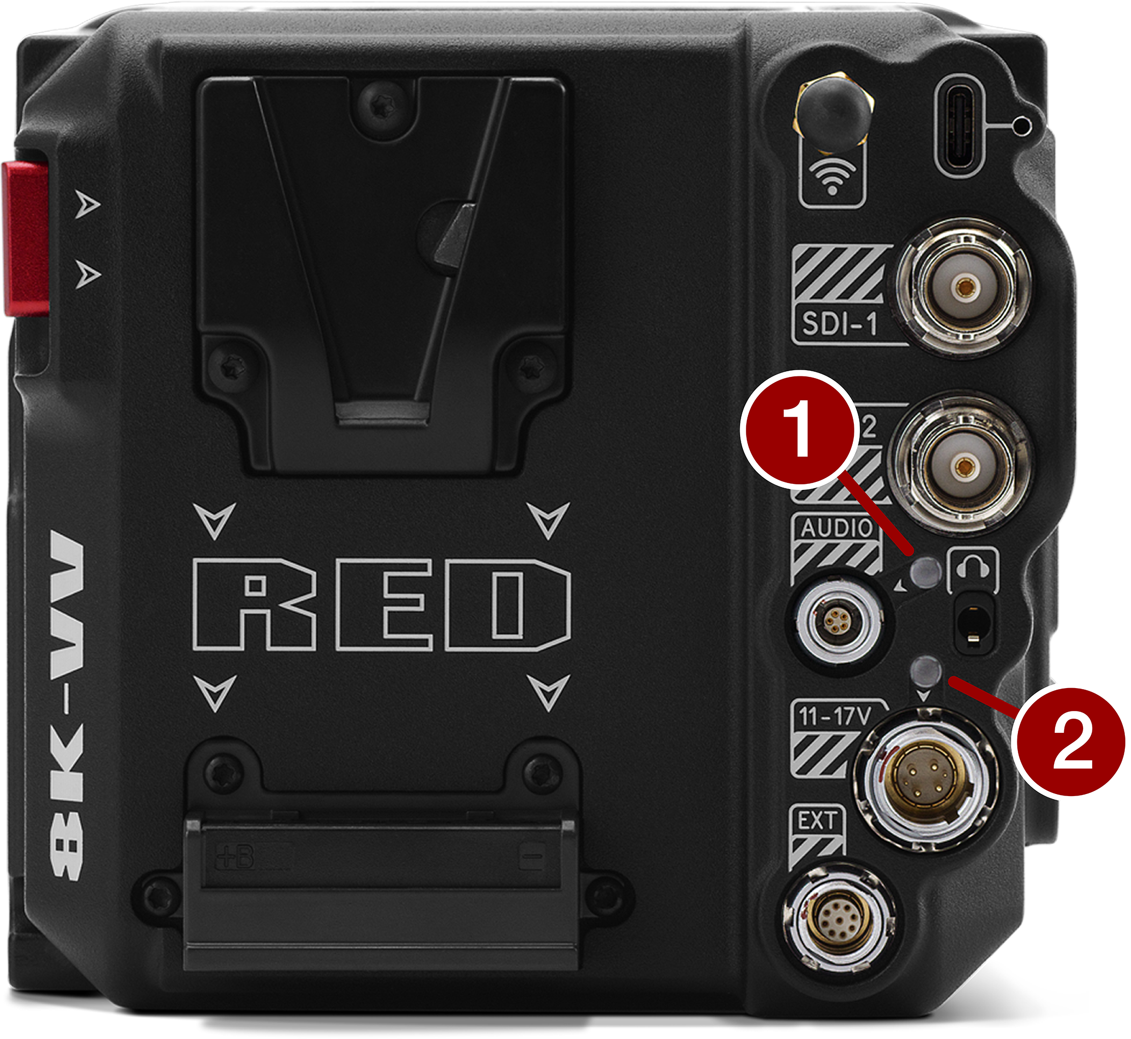 14.4 V Micro V-Lock battery mount (refer to REDVOLT Batteries) |
