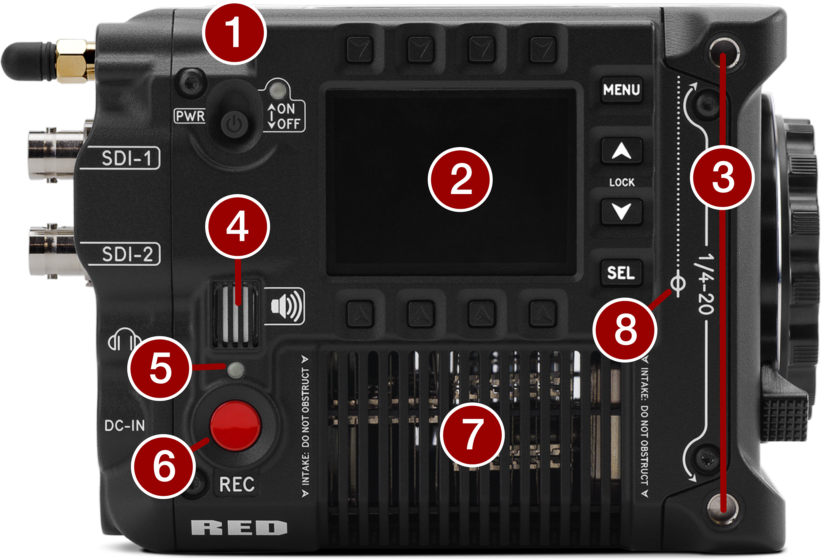 Connection port for accessories (refer to Outrigger Handle, and DSMC3™ RED® Touch 7.0" LCD) |