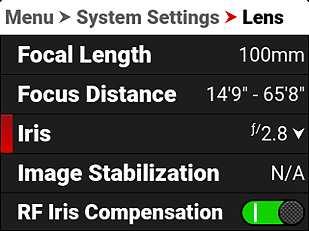 Disable RF Iris Compensation to eliminate iris fluttering during zooming |