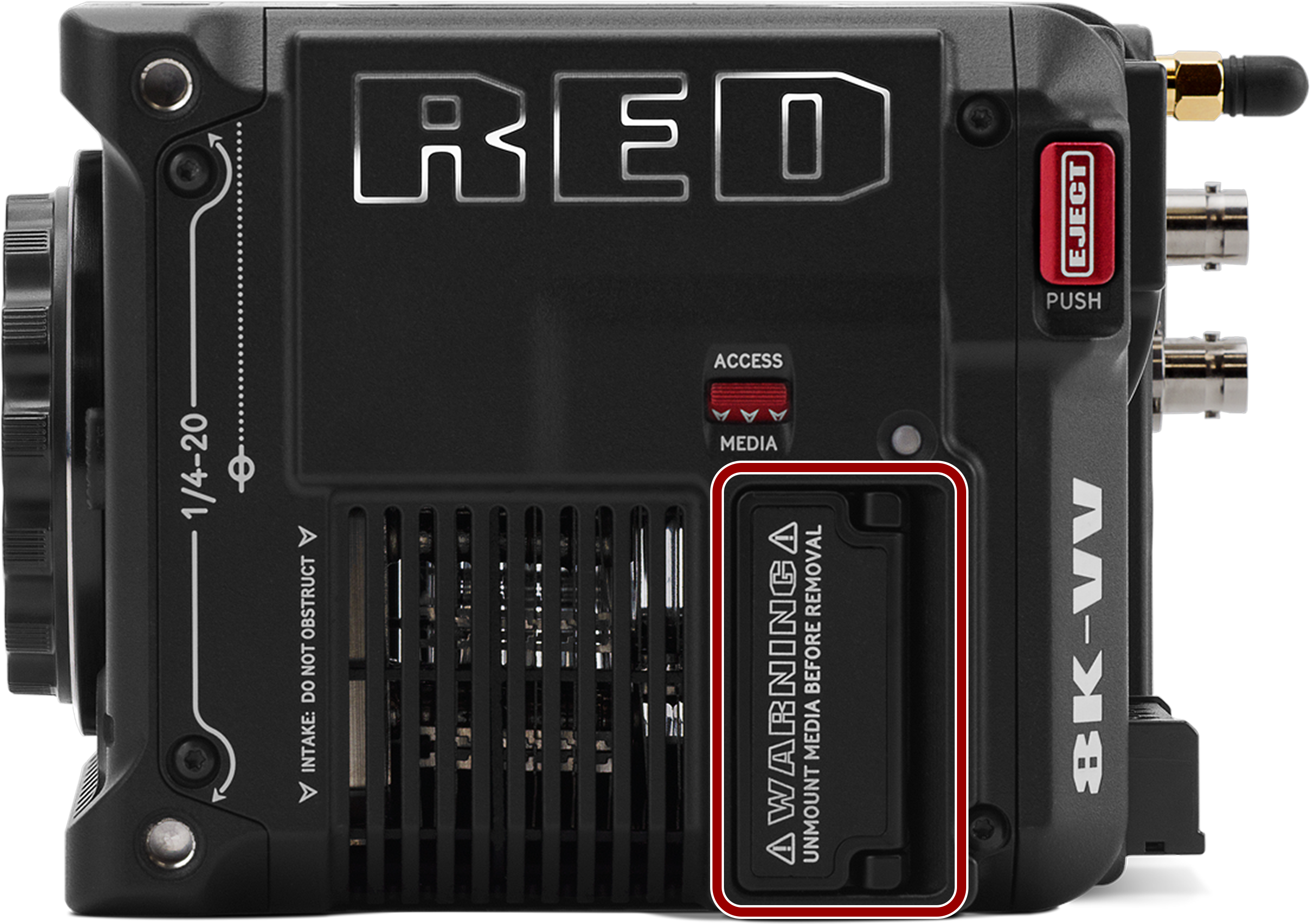 NOTE: Do not remove the CFexpress card without first ejecting using the Media Menu. Refer to Media Management for more information.