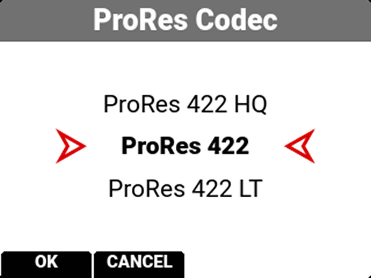 - The setting for ProRes resolution is set to 2K (17:9) or HD, and you cannot change it.