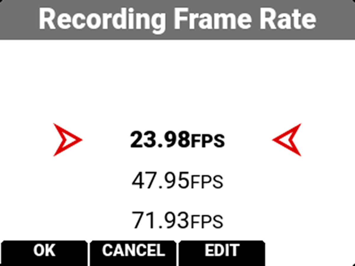 Press and hold the button above SHUTTER to toggle the shutter between degrees and fractions (refer to Shutter for more information).