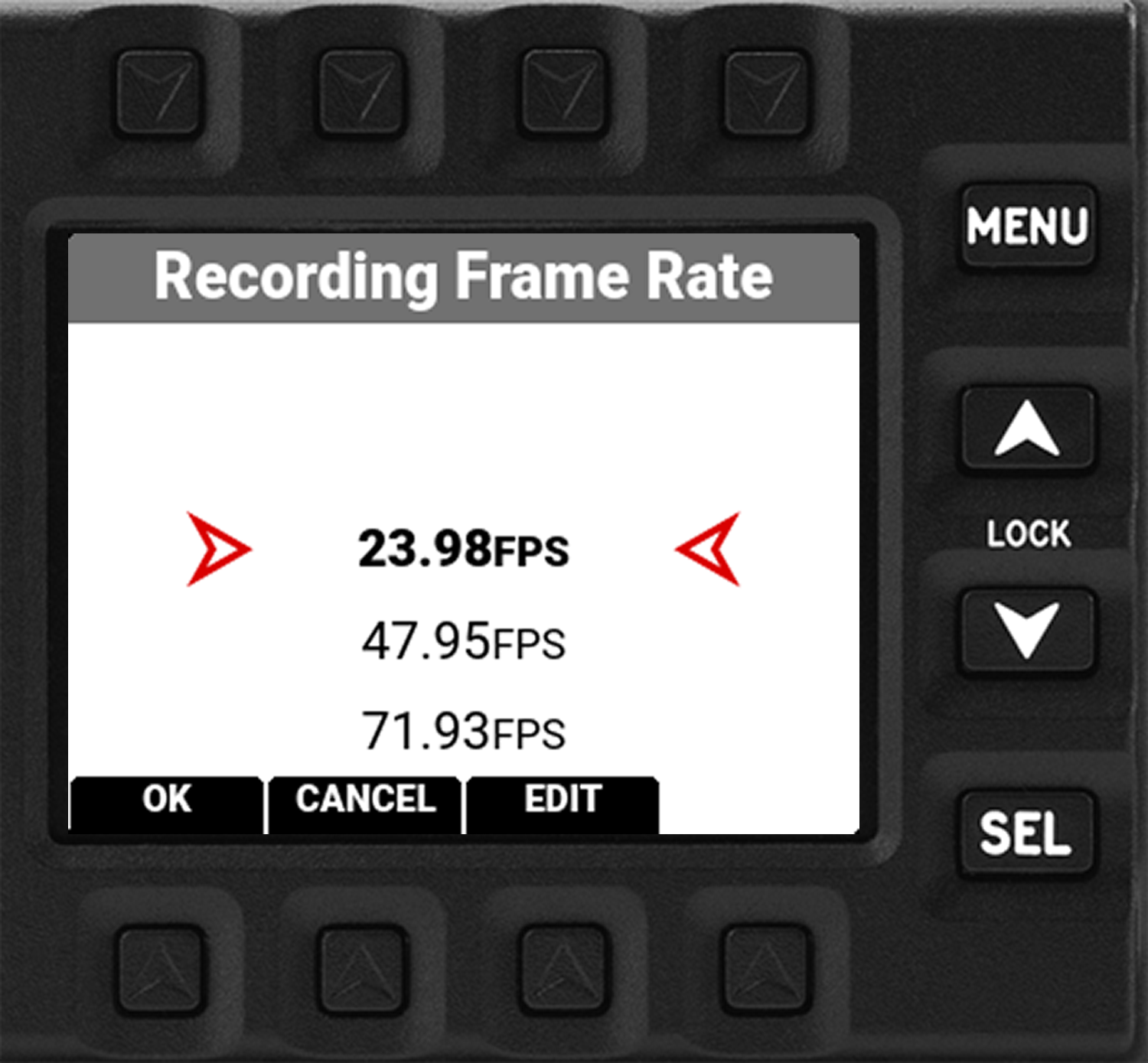 In this example, pressing the button above FPS opens the Recording Frame Rate selection list: