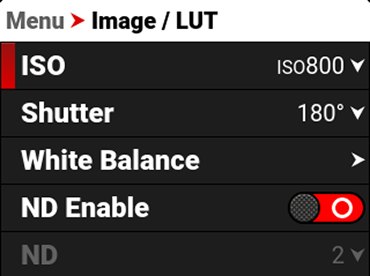RED recommends setting the ISO to the default of 800, then adjusting the aperture and lighting to match. You can adjust the ISO later for fine-tuning.