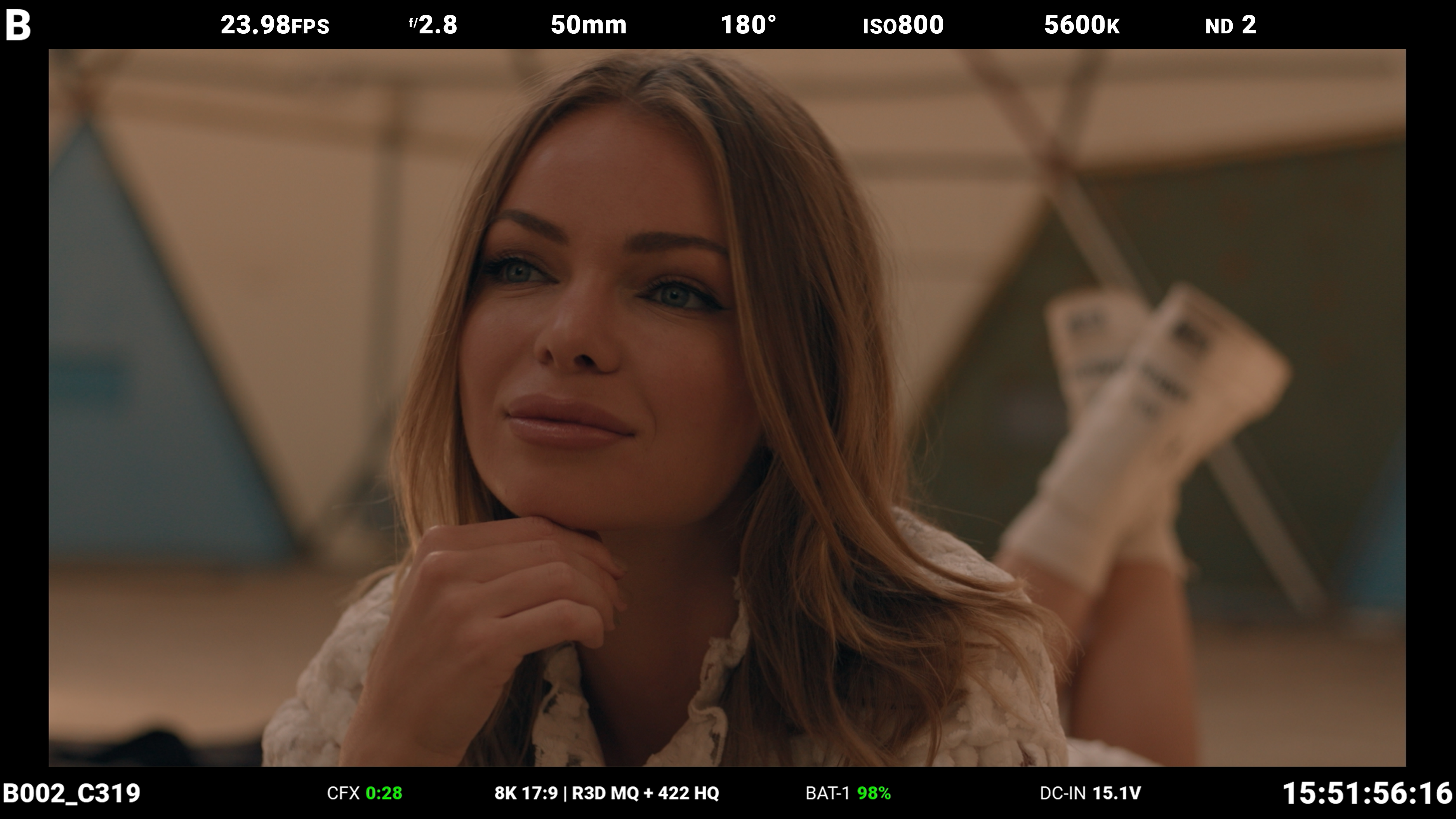 • Clip Name • CFexpress Time Remaining • Format, File Type, Rate • Battery • DC-IN • Timecode |