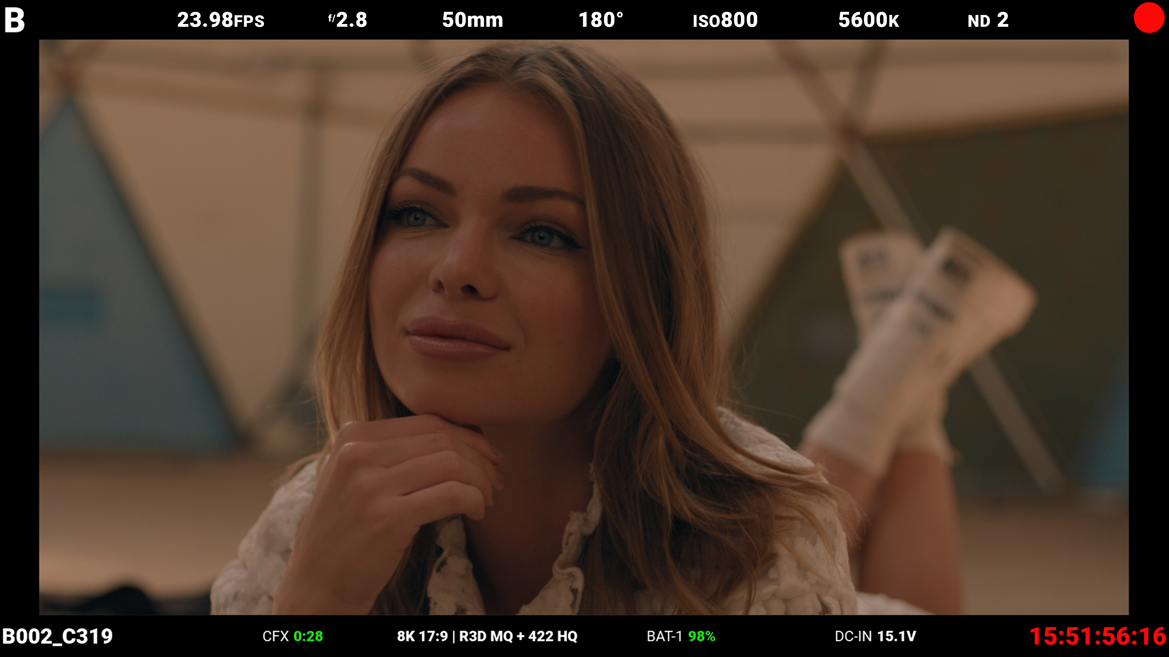 When the camera is recording, the Timecode turns red, and a red dot appears in the top right corner.