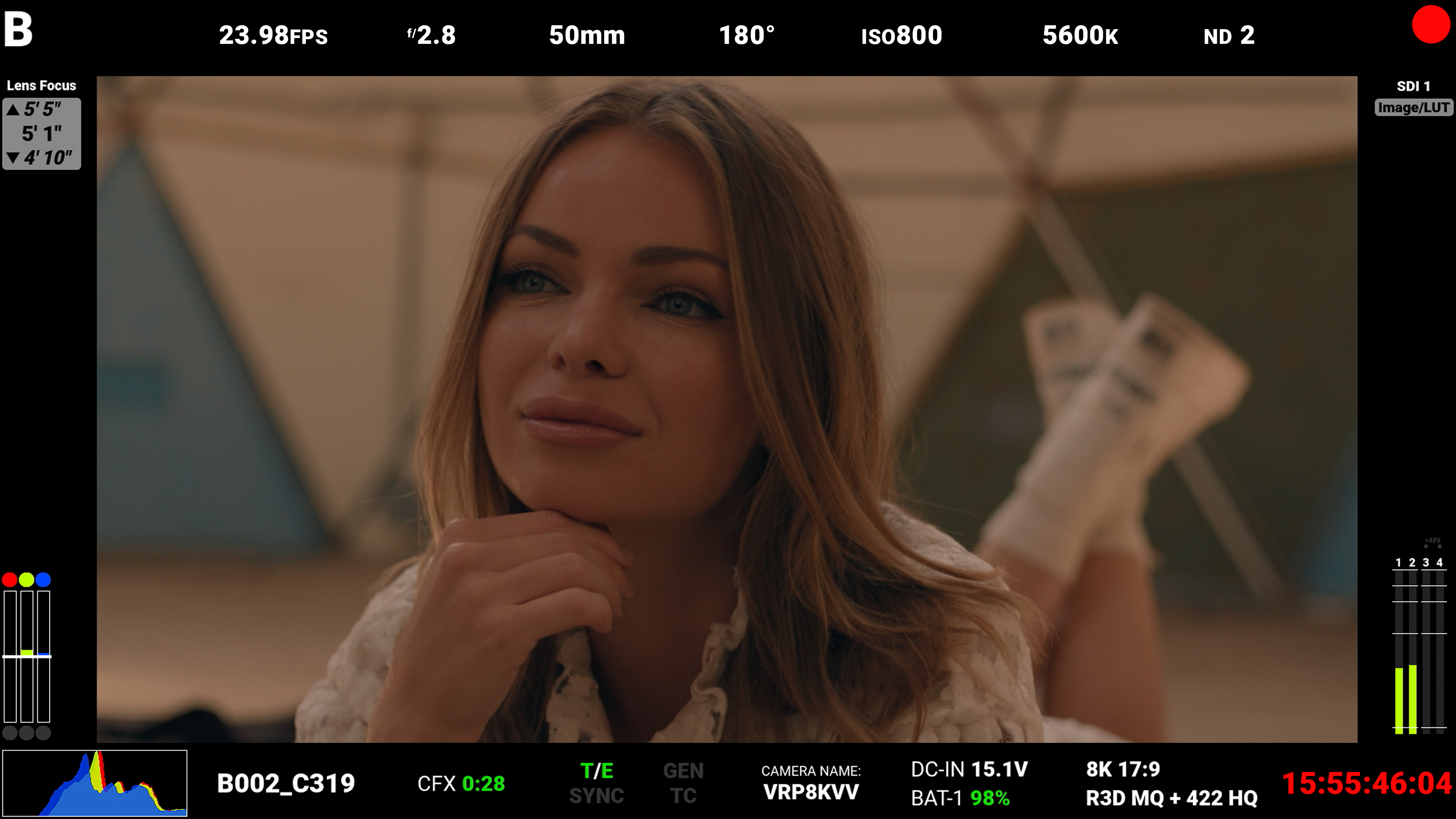 Use Custom Display to configure the SDI independently of the camera's Image / LUT settings or other monitor output configurations. The camera saves the LUT applied here as a sidecar file alongside the R3D or ProRes file. The saved file uses the format sdi#_LUT Name.cube. Refer to Image / LUT Menu for more information about how to use the Image/LUT settings and menus. |