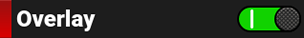 Use Overlay to enable or disable the viewing of the overlay. You can enable and disable the overlay by pressing SEL to toggle Overlay to the right (green / enabled) and to the left (red / disabled).