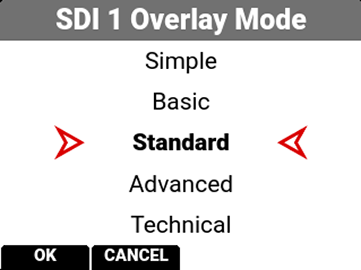 Use Overlay Mode to select one of the following SDI port overlay modes: