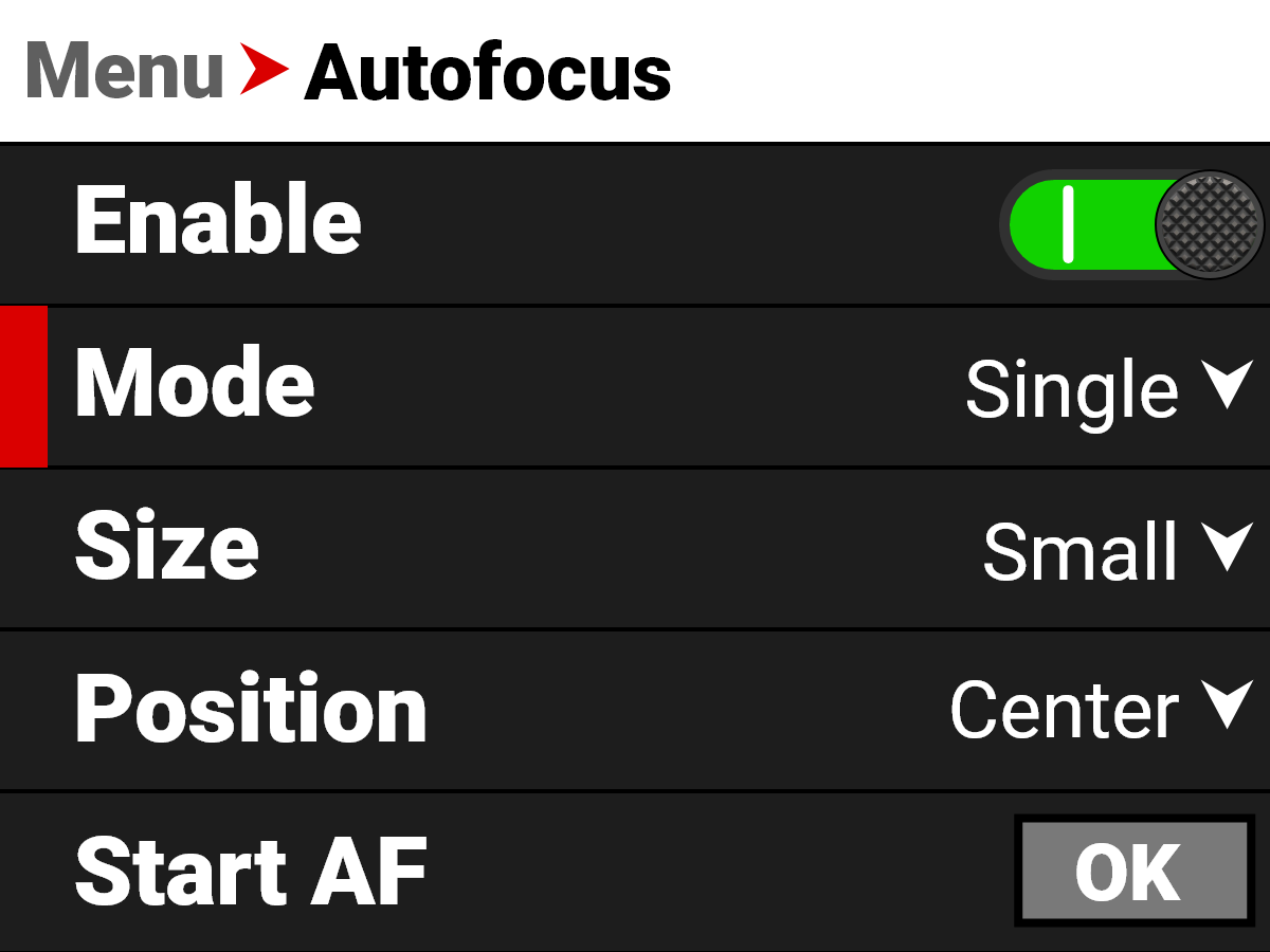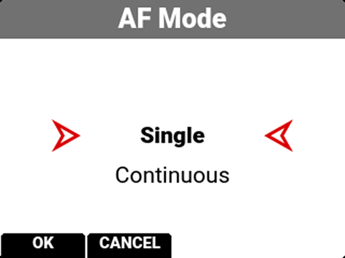 Use Mode to select the autofocus mode for the camera. The lens must support autofocus for the camera to use this feature.