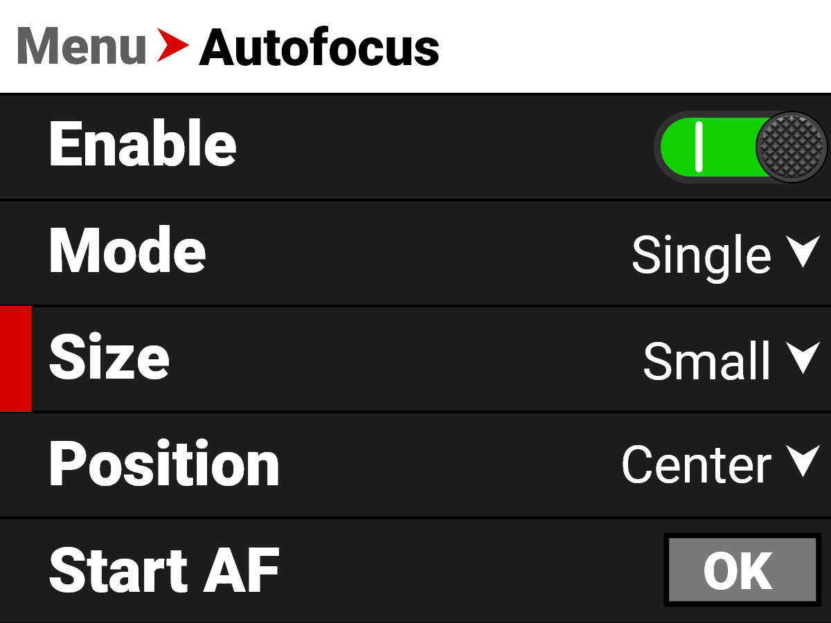 Use Size to choose what size area you want the camera to use for the autofocus feature. The lens must support autofocus for the camera to use this feature.
