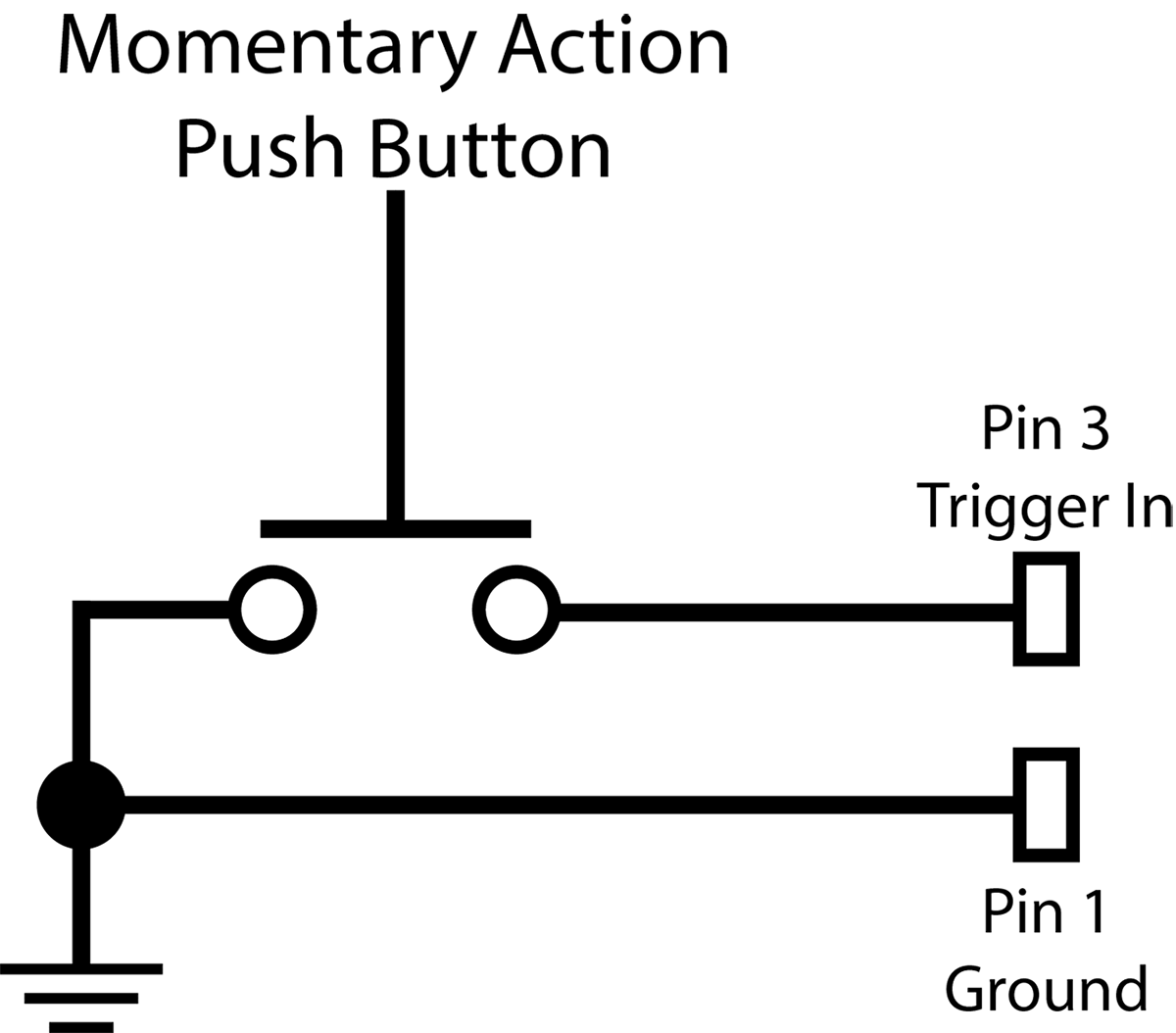The diagram below shows the contact closure style trigger button circuit on the 24 V RS connector.