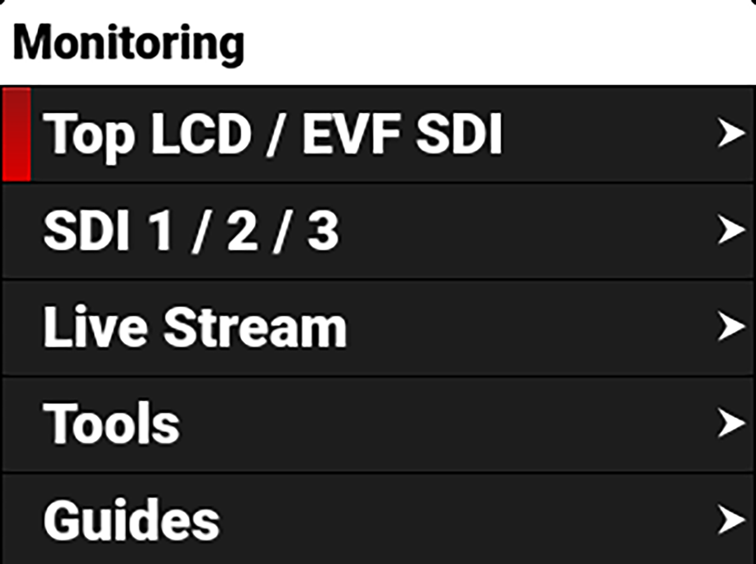 NOTE: False Color modes display on video recorded through SDI to an external recorder when the Tools are enabled in the Monitor menu. When recording through SDI, use False Color modes only to help determine scene exposure settings, and then disable the mode before recording.