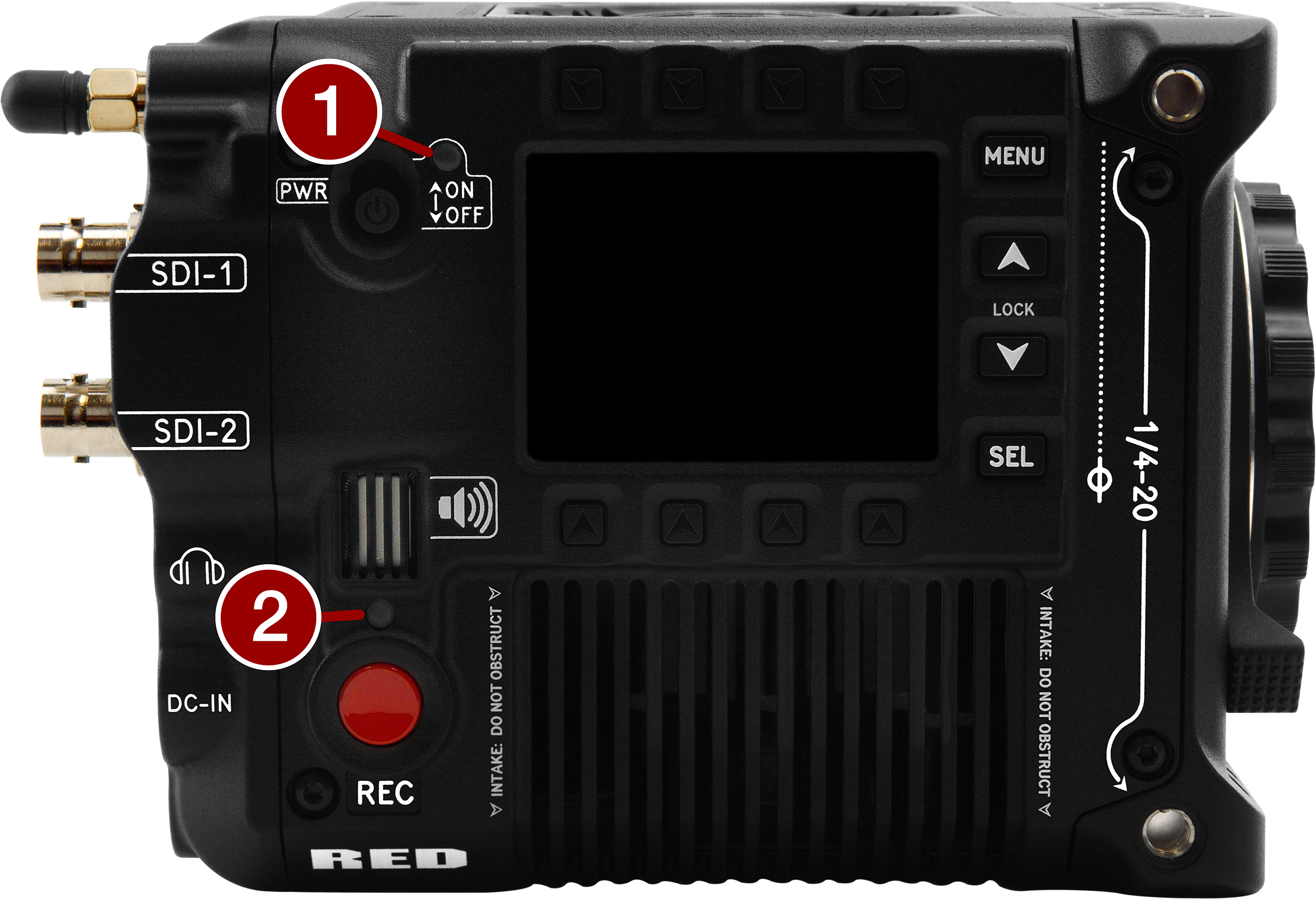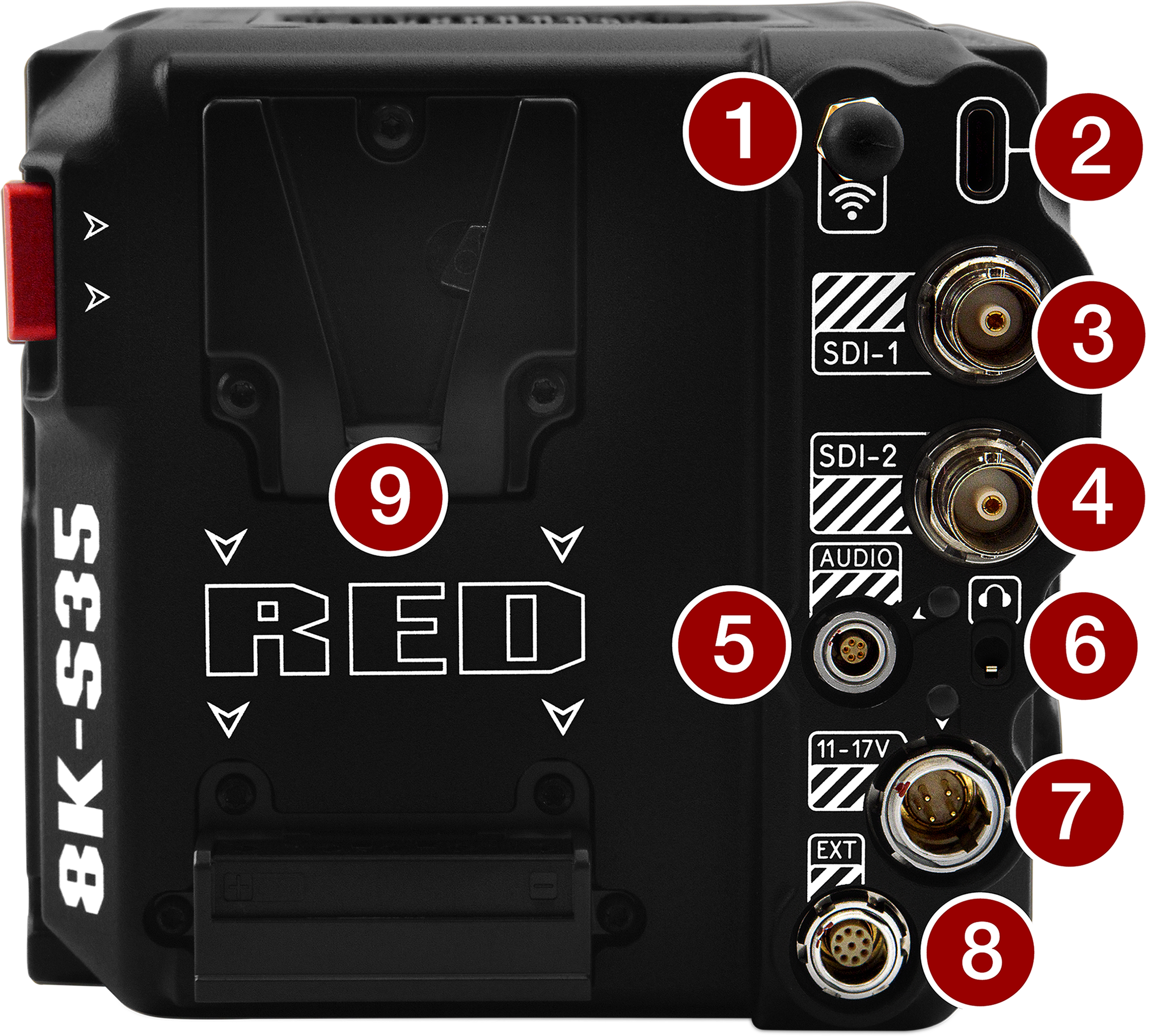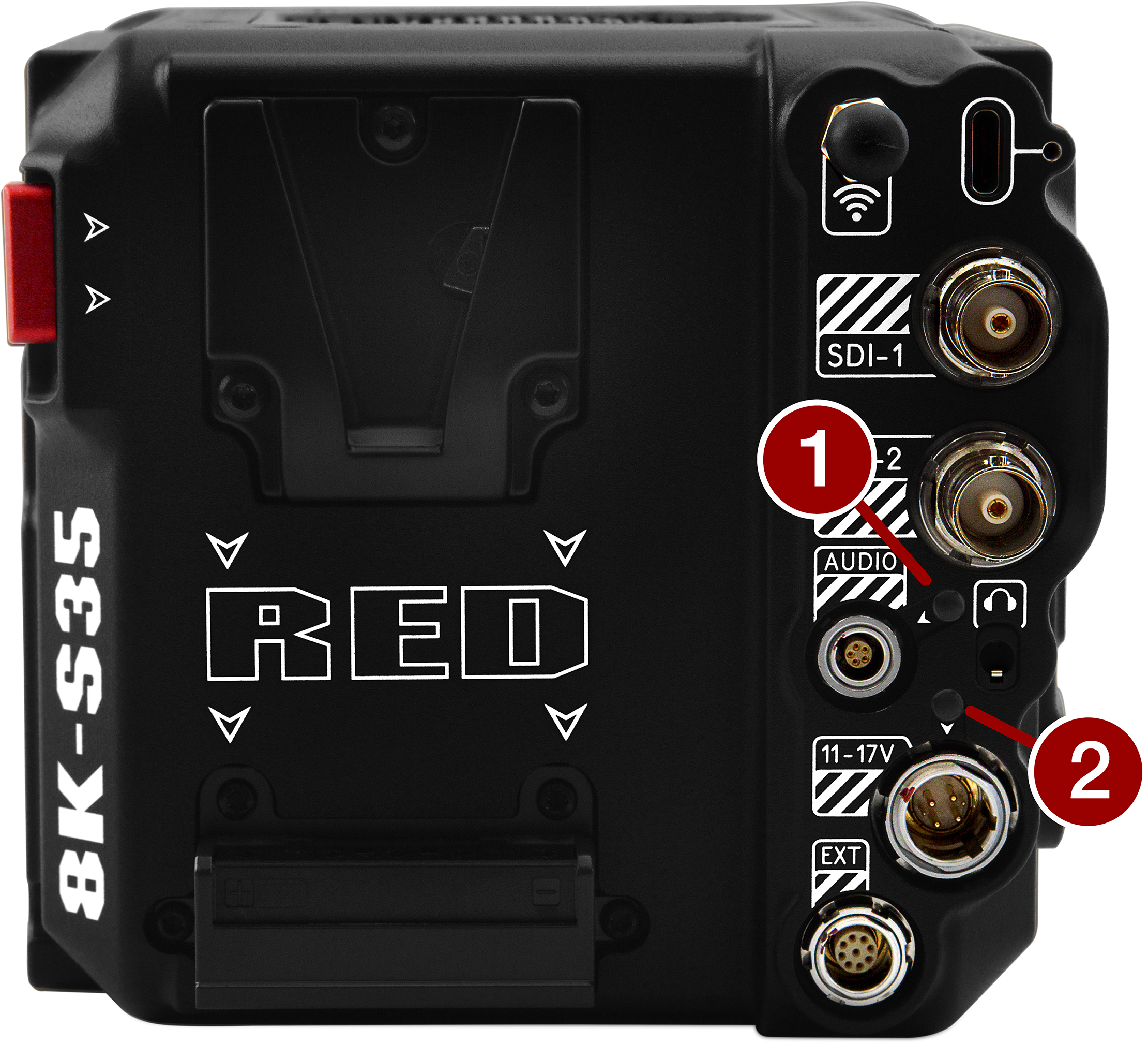 14.4 V Micro V-Lock battery mount (refer to REDVOLT Batteries) |