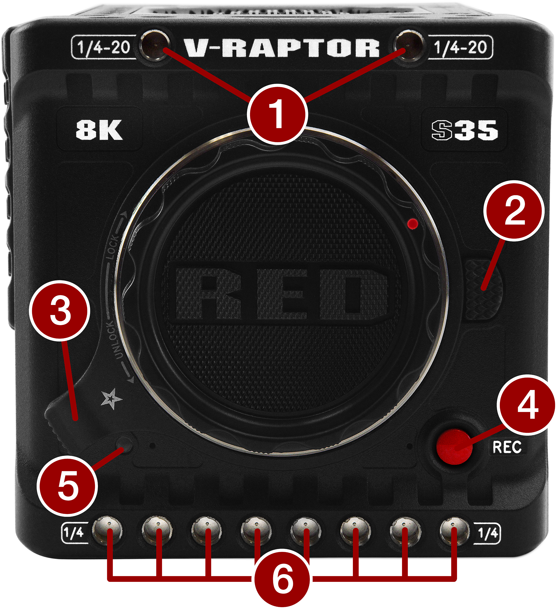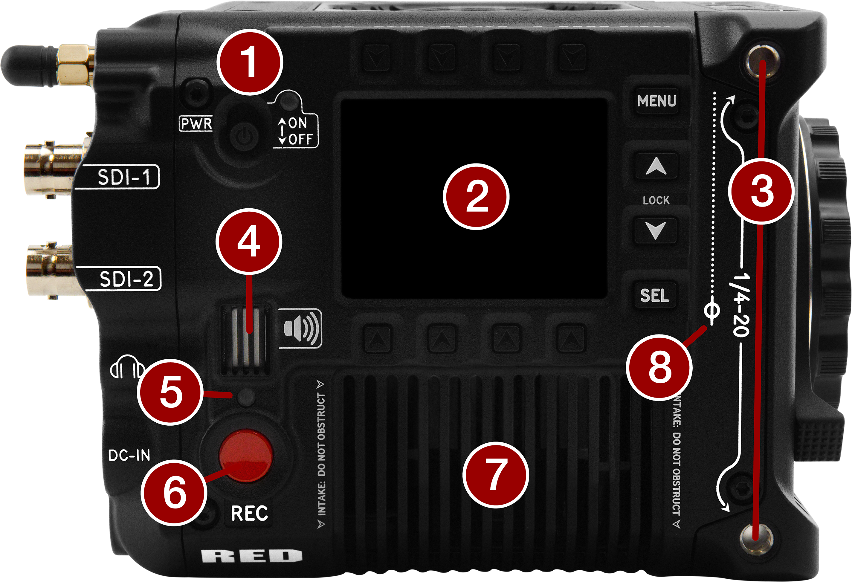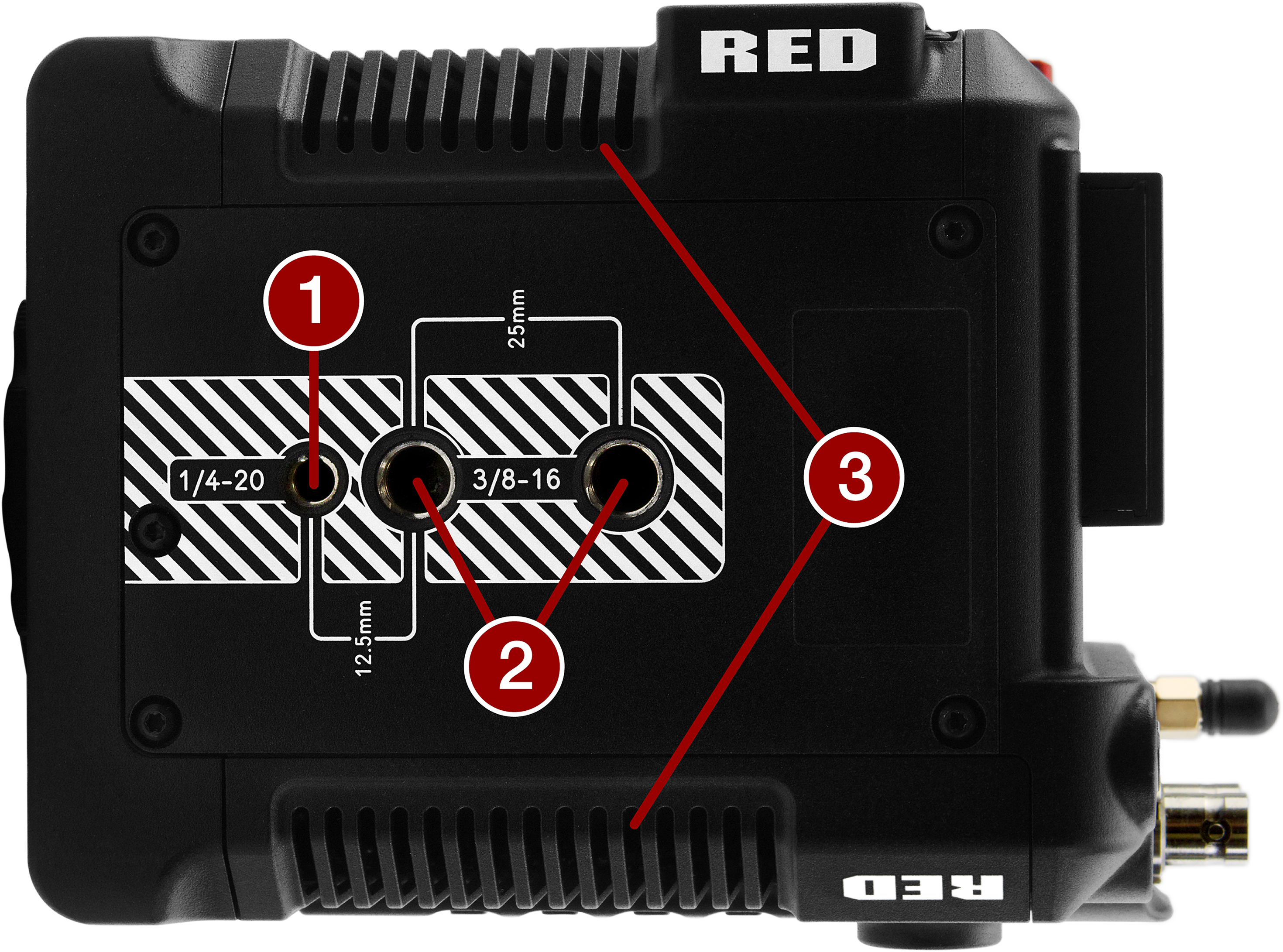Connection port for accessories (refer to Outrigger Handle, and DSMC3™ RED® Touch 7.0" LCD) |