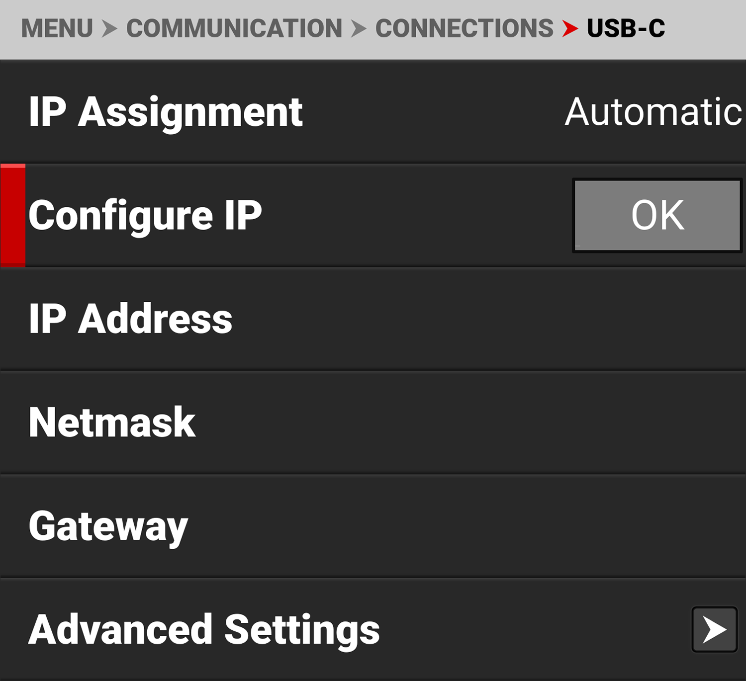 When Manual IP Assignment is enabled, you can select IP Address and manually enter a static IP address.