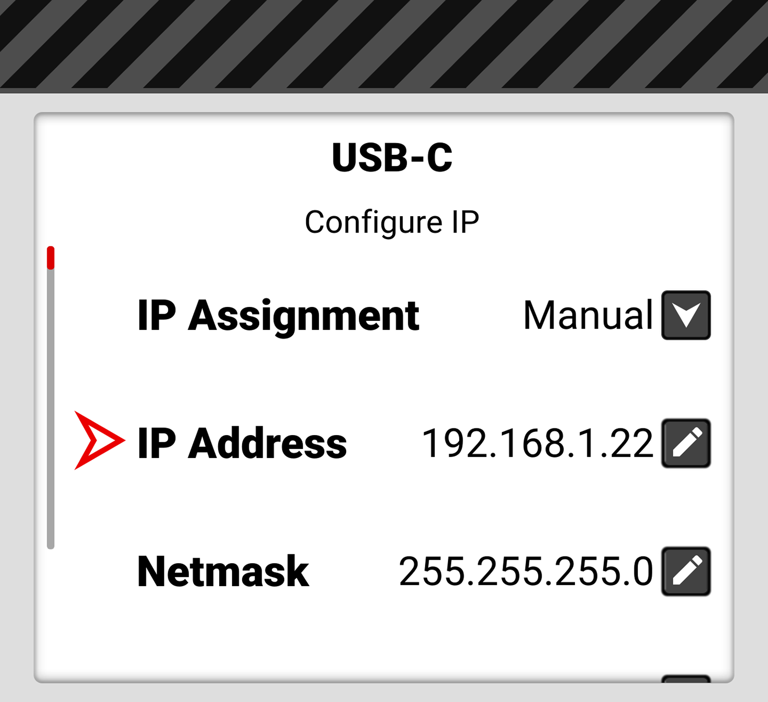 When Manual IP Assignment is enabled, 255.255.255.0 is automatically populated as the Netmask address.