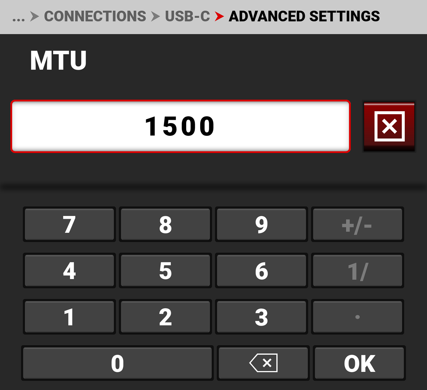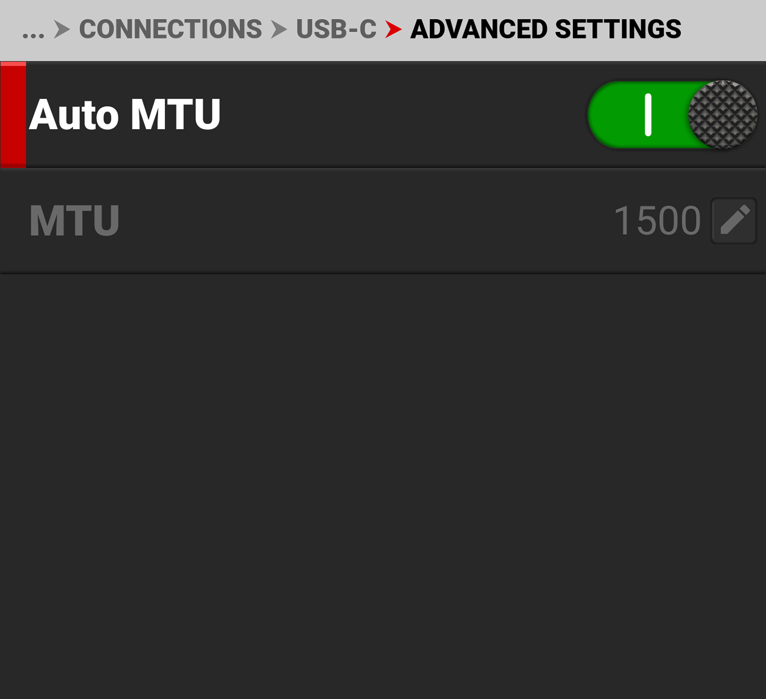 The USB-C Advanced Settings menu allows you to change the MTU size.