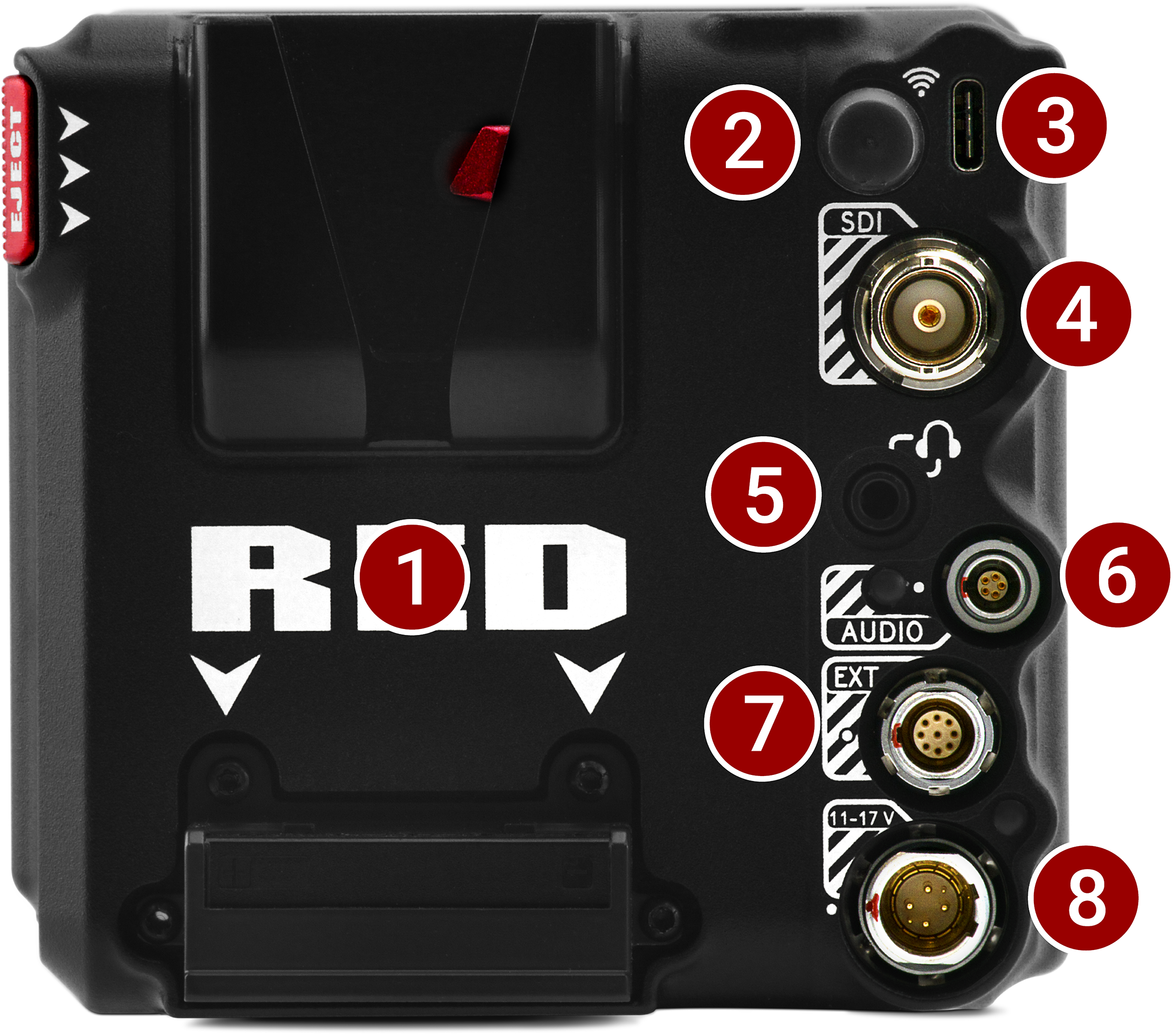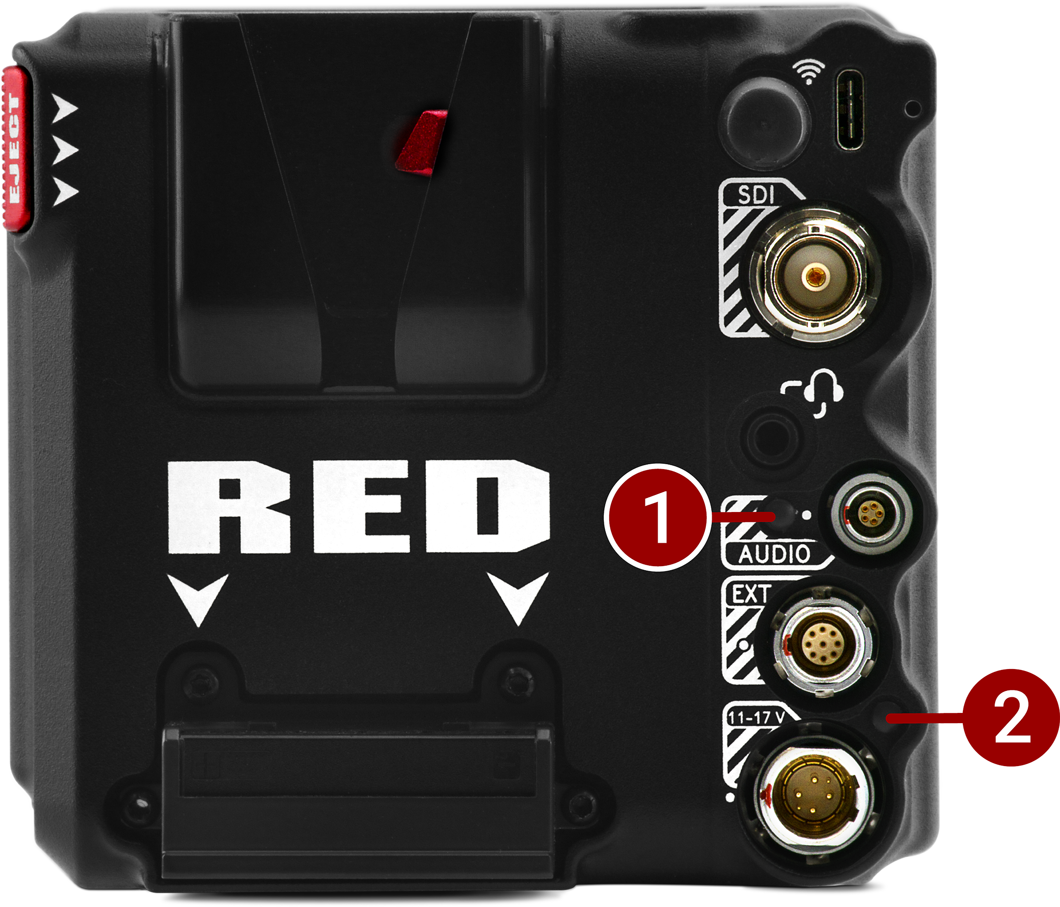 14.4 V Micro V-Lock mount (refer to REDVOLT® MICRO-V Battery and REDVOLT® NANO-V Battery)1 |