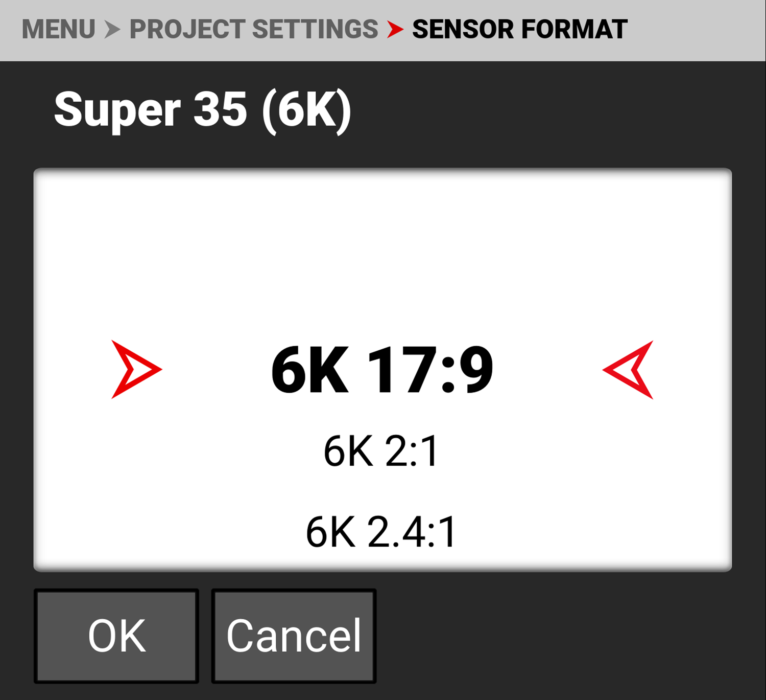 Use the Super 35 (6K) sensor format setting to designate how much of the sensor the camera should use to capture images.