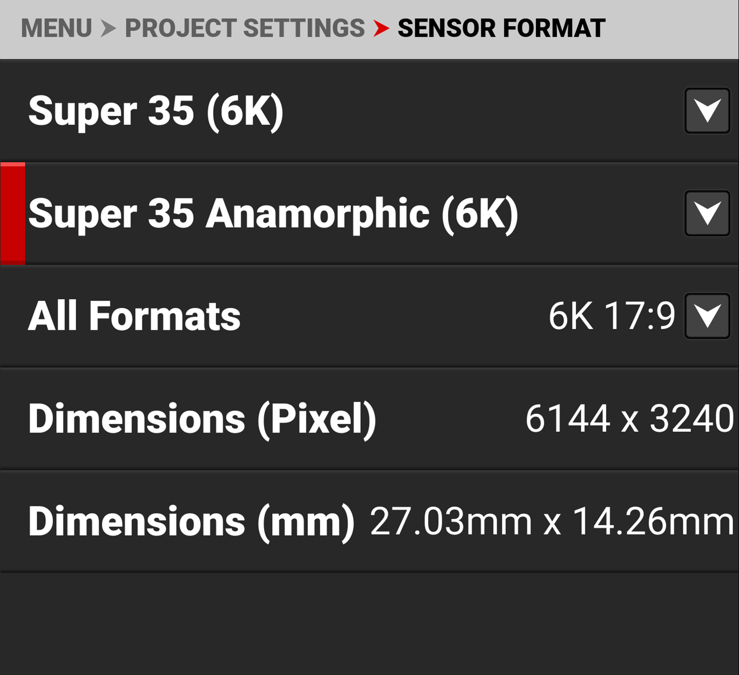 Super 35 Anamorphic (6K) Sensor Format Specifications