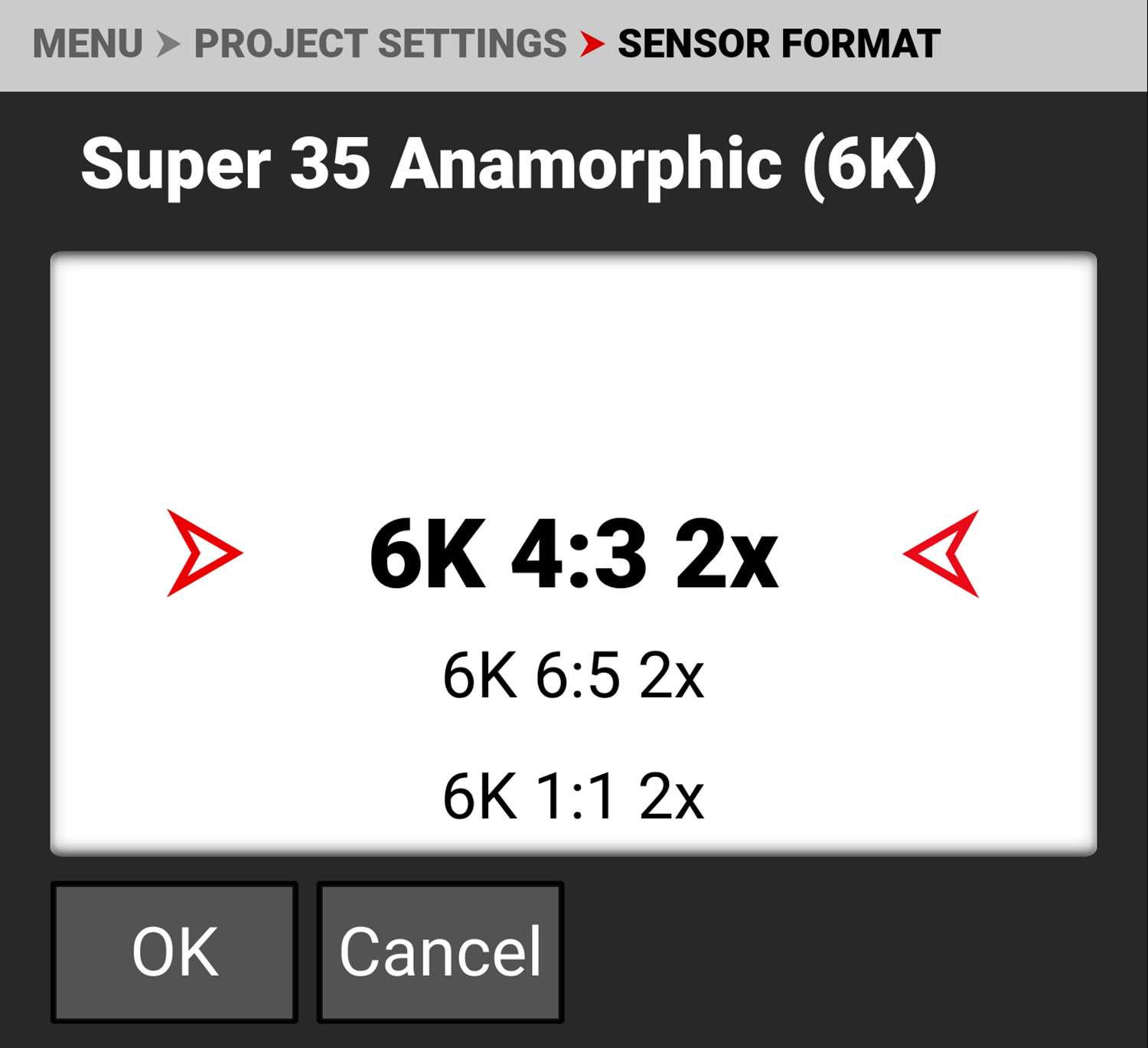 The default setting is 6K 4:3 2x.