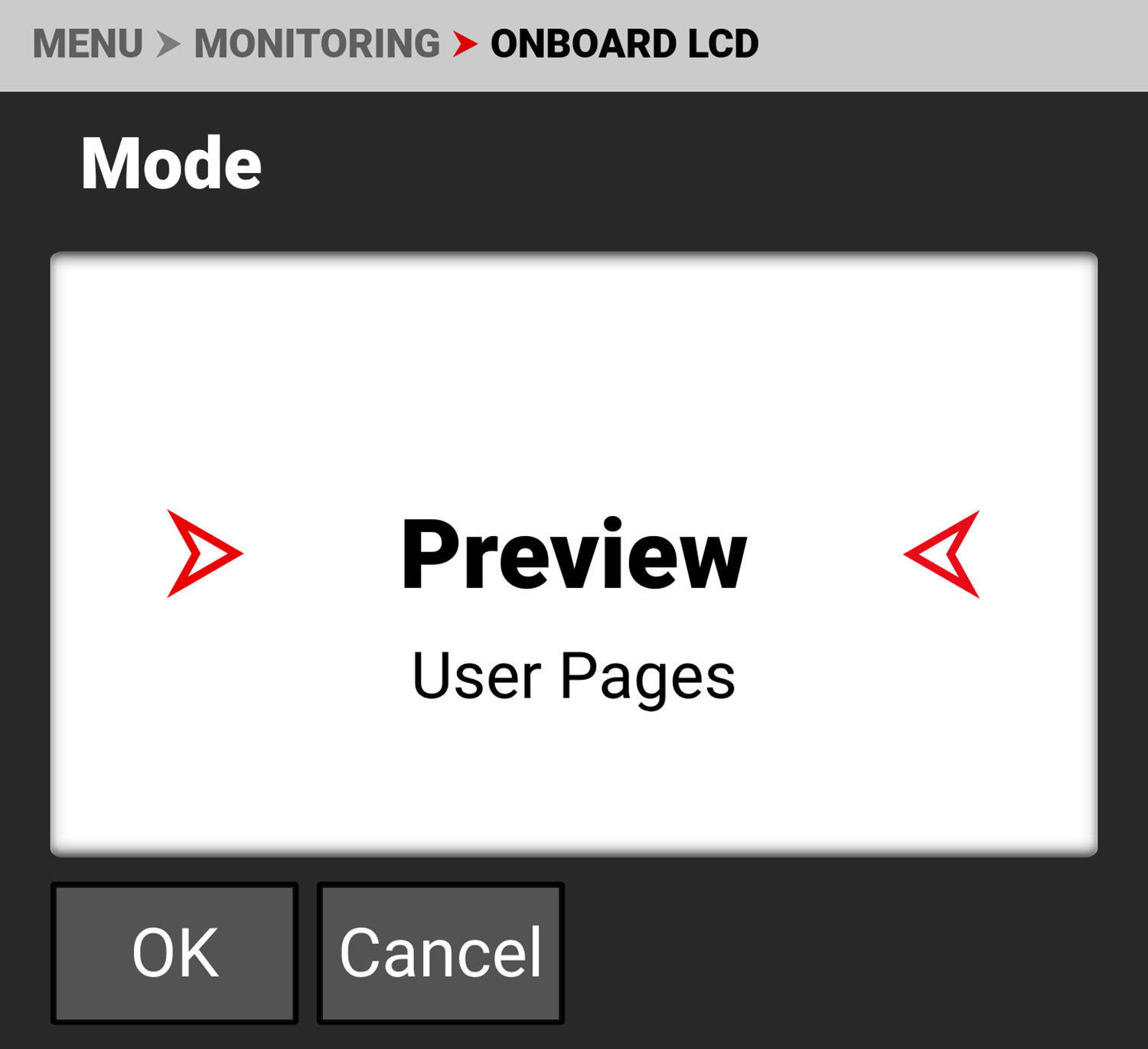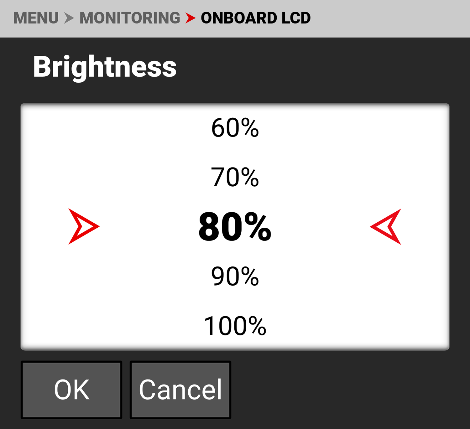 Use Brightness to adjust the Onboard LCD screen brightness.