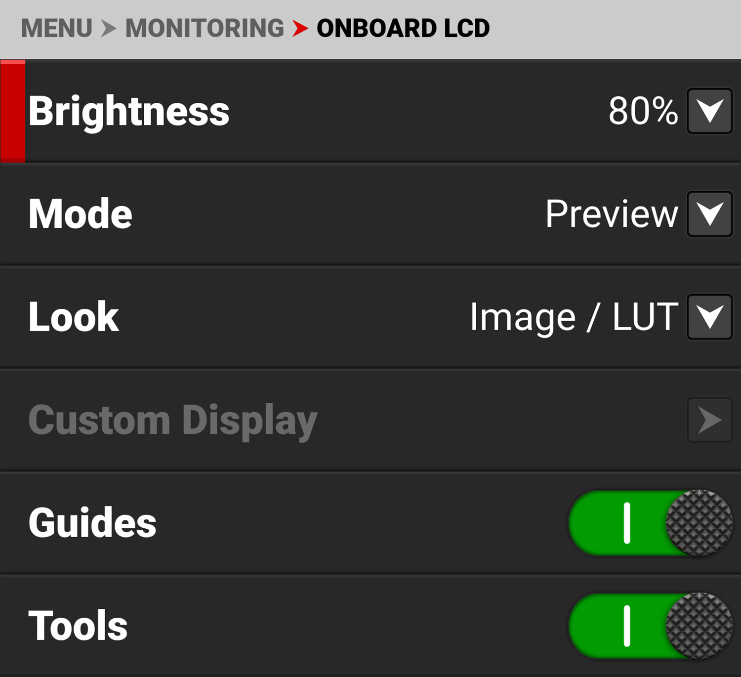 Refer to Image / LUT Menu for more information about the specific look settings and menus.