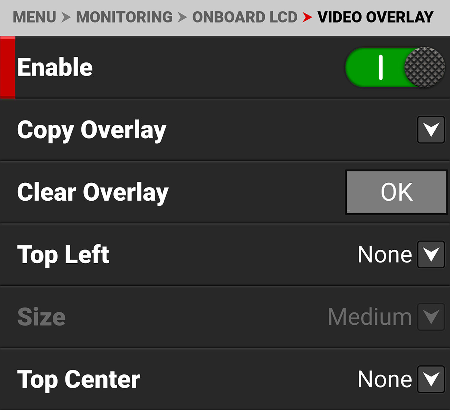 Copy an overlay to or from the SDI from or to the Onboard LCD |