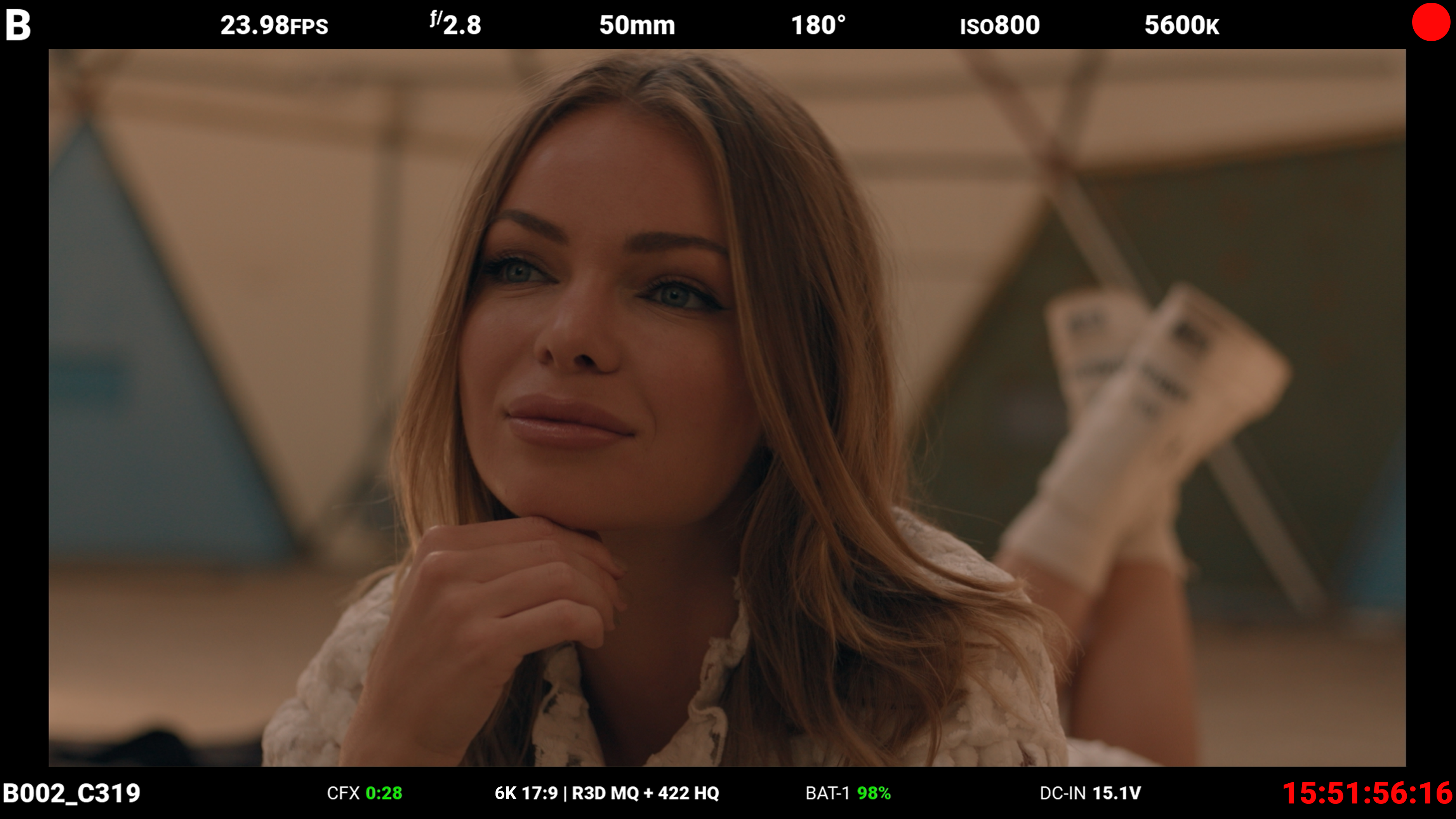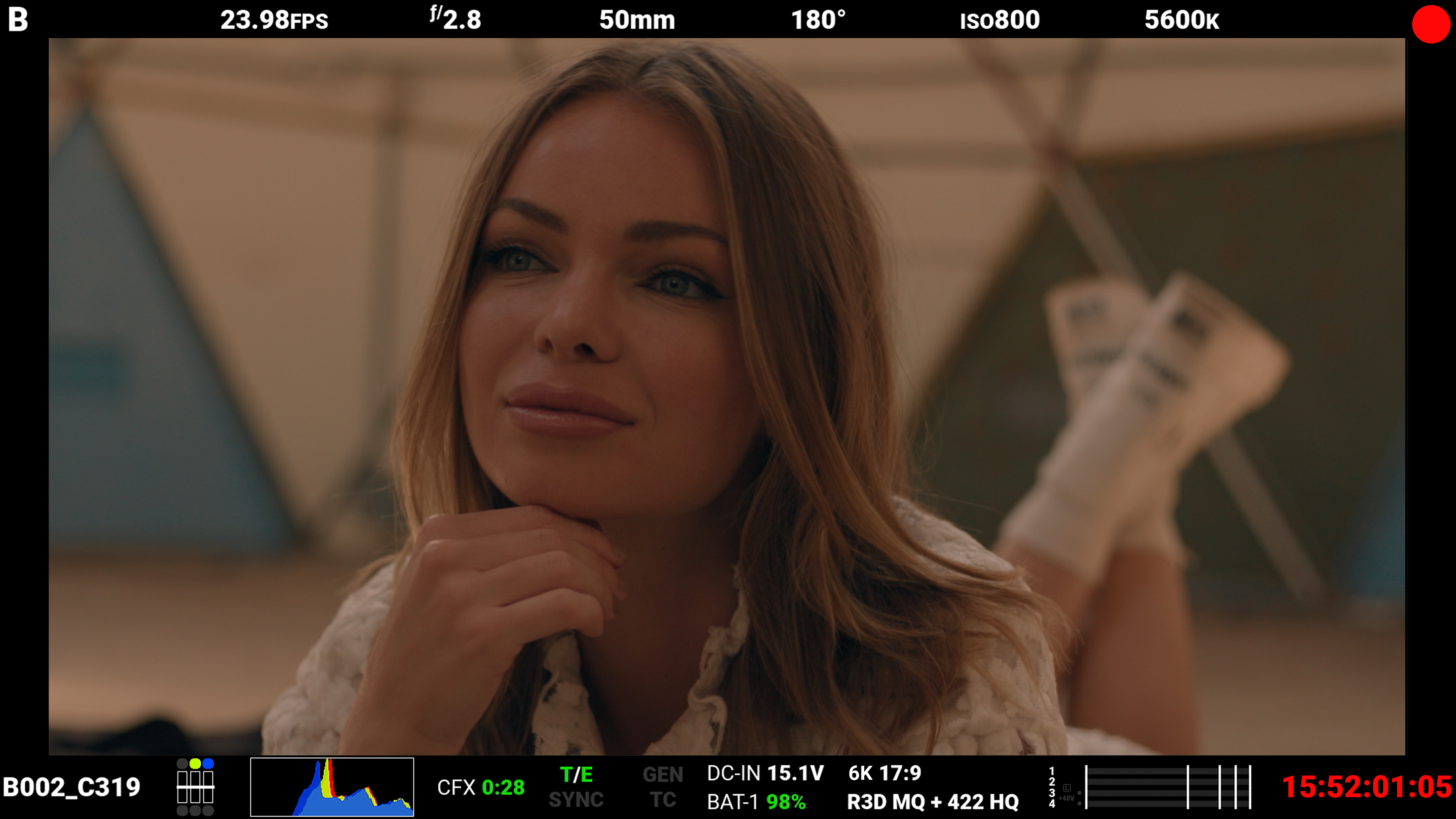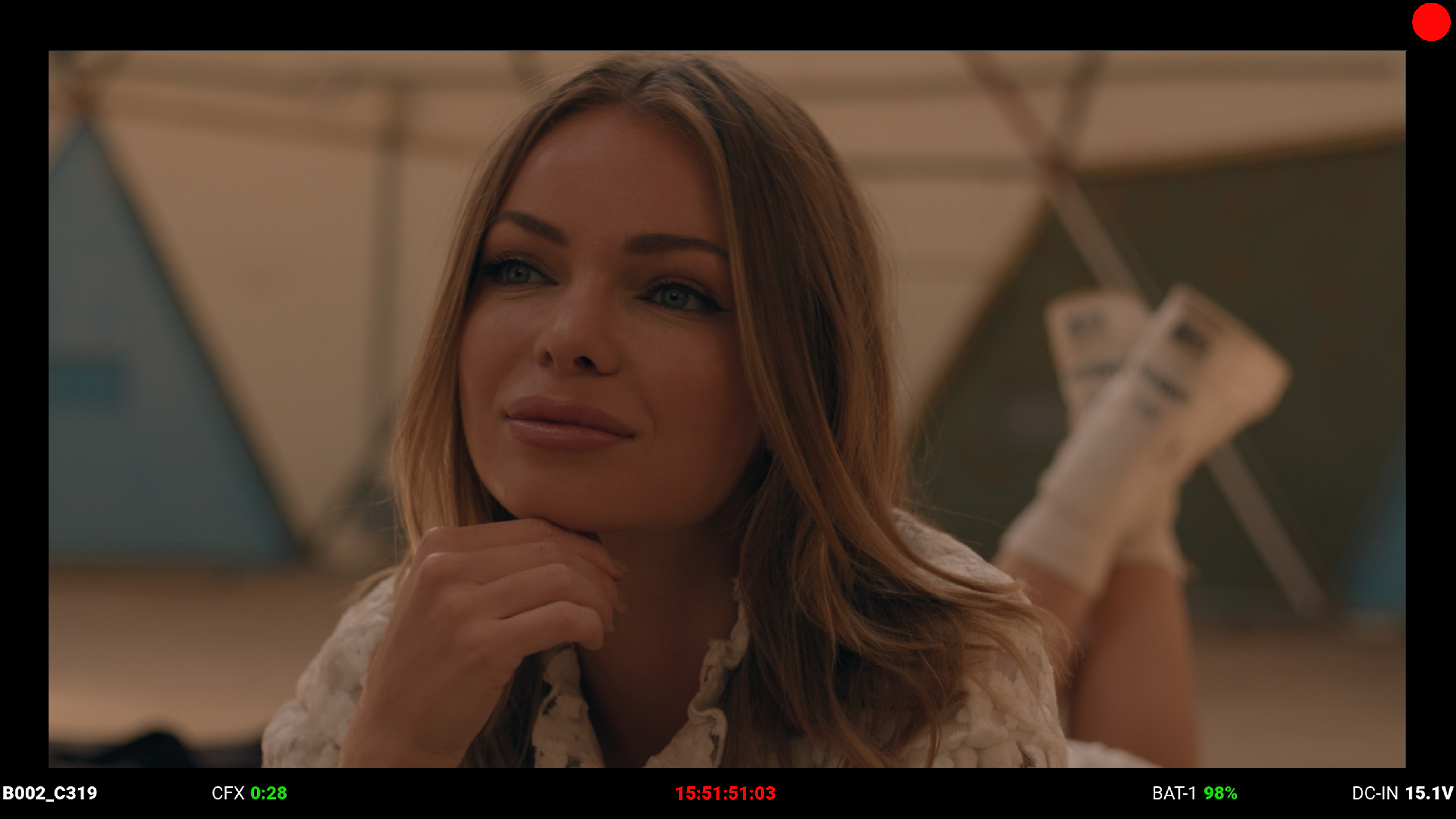 When the camera is recording, the Timecode turns red, and a red dot appears in the top right corner.