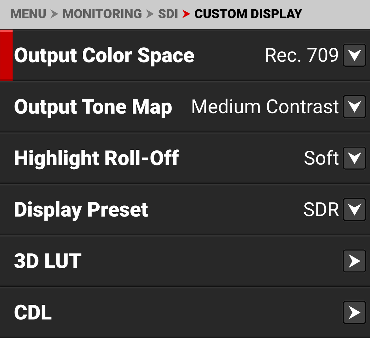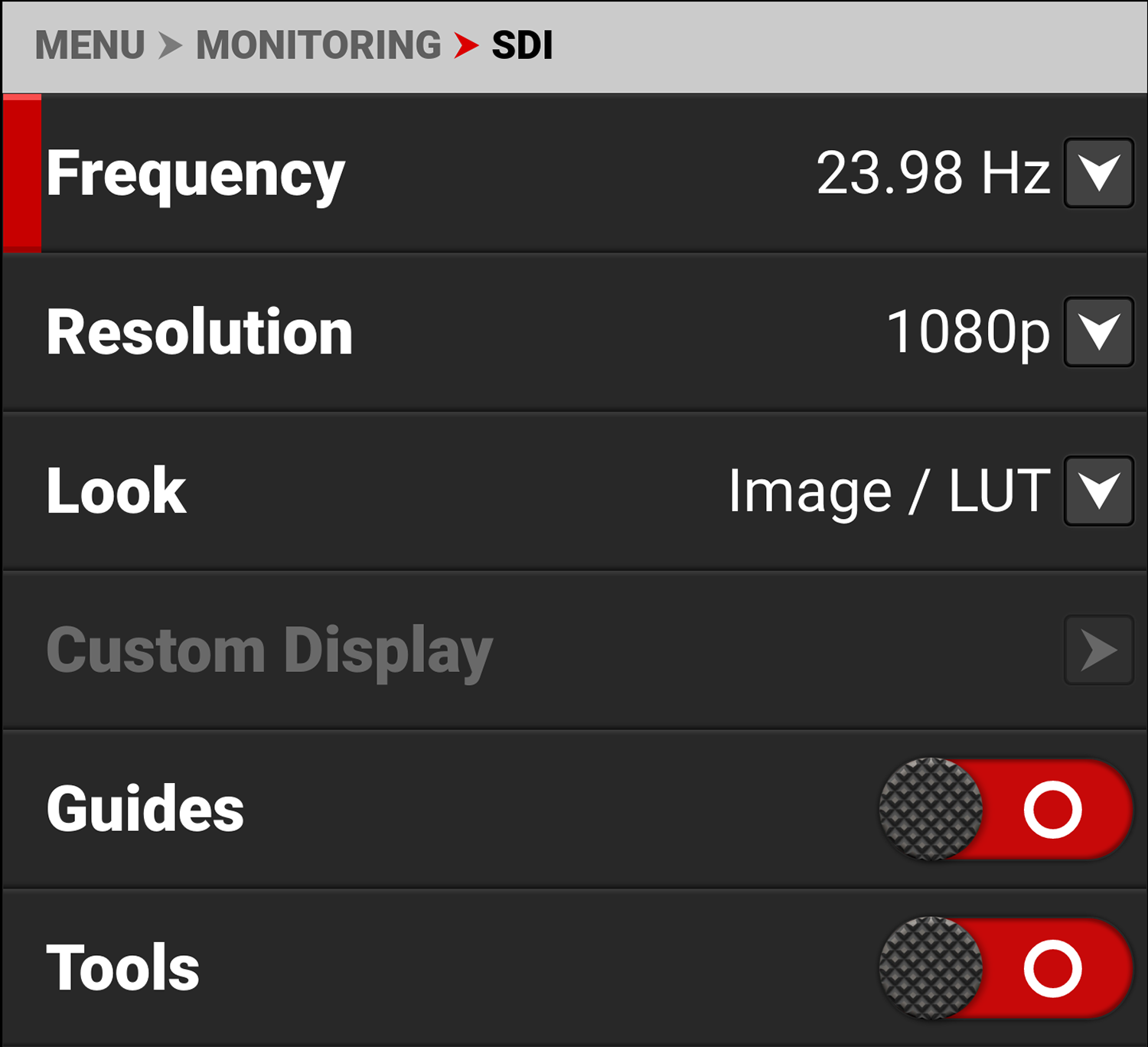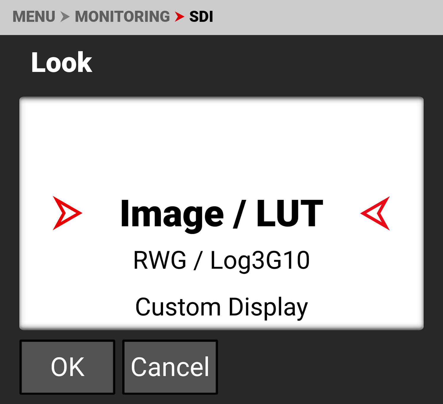 Refer to Image / LUT Menu for more information about the specific look settings and menus.