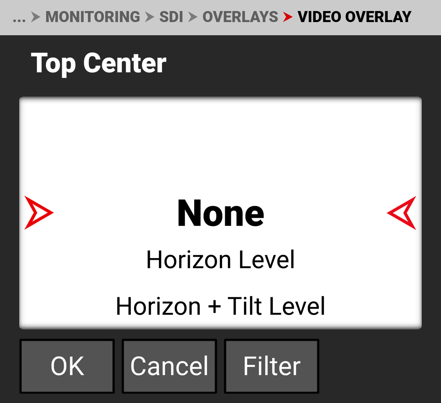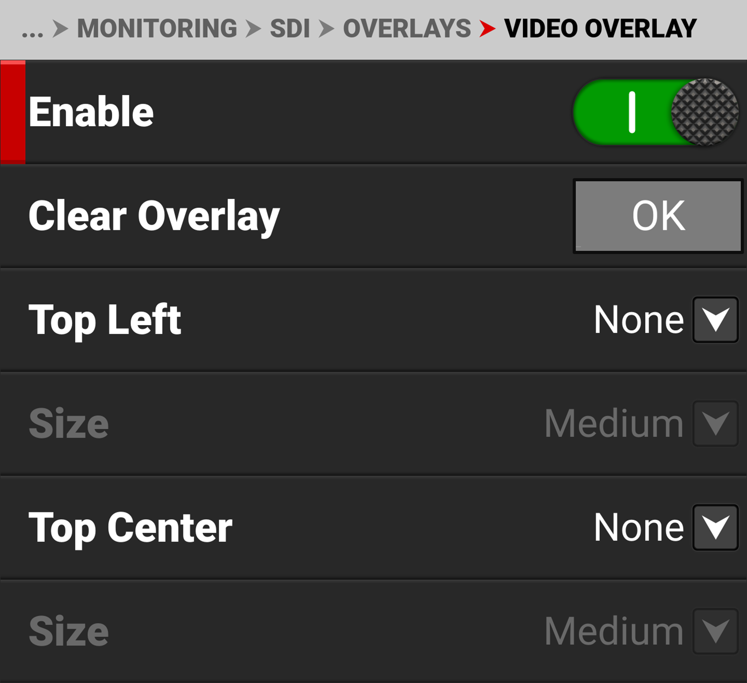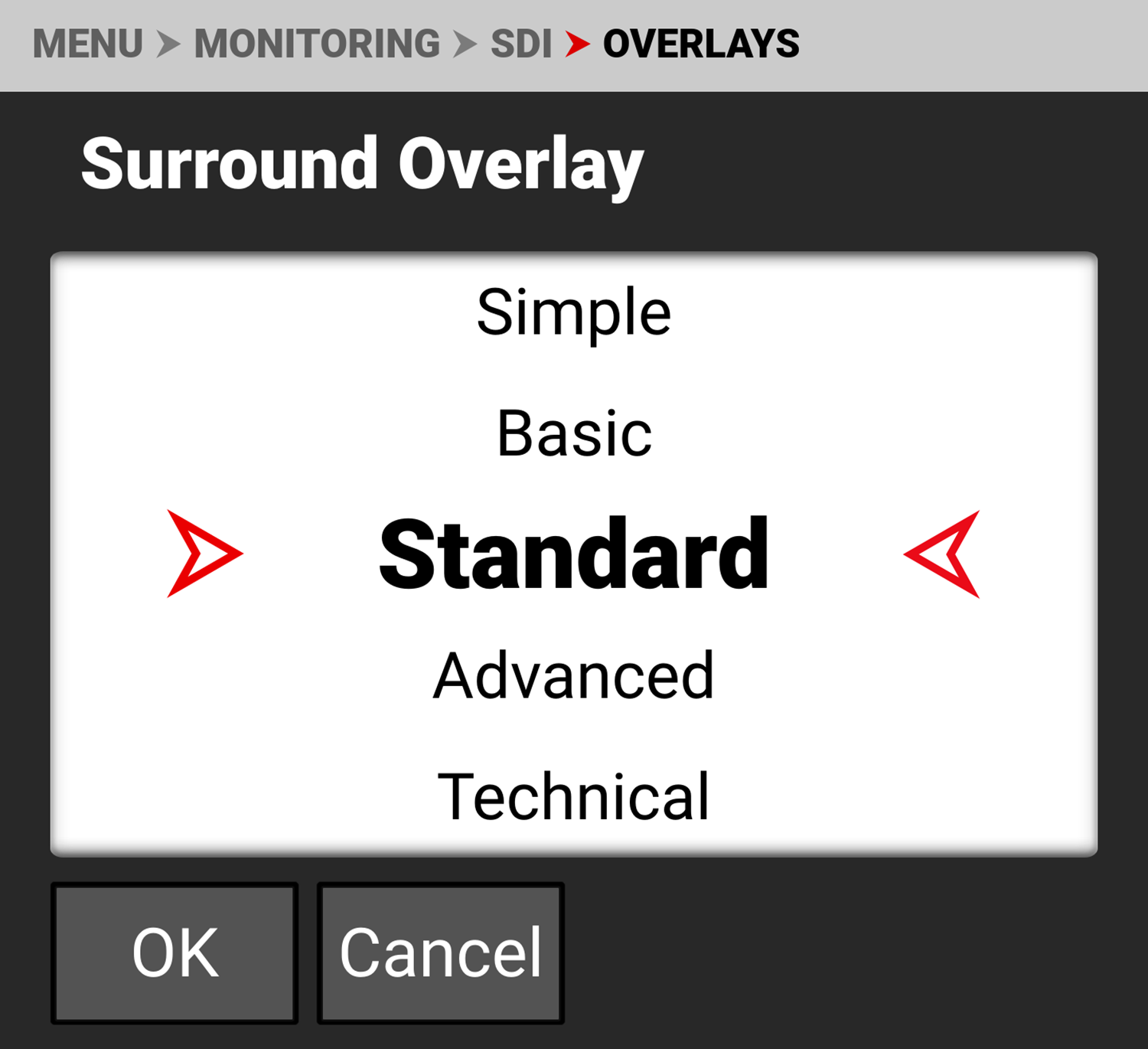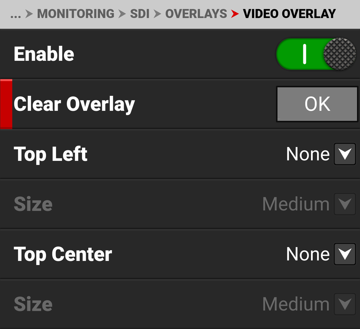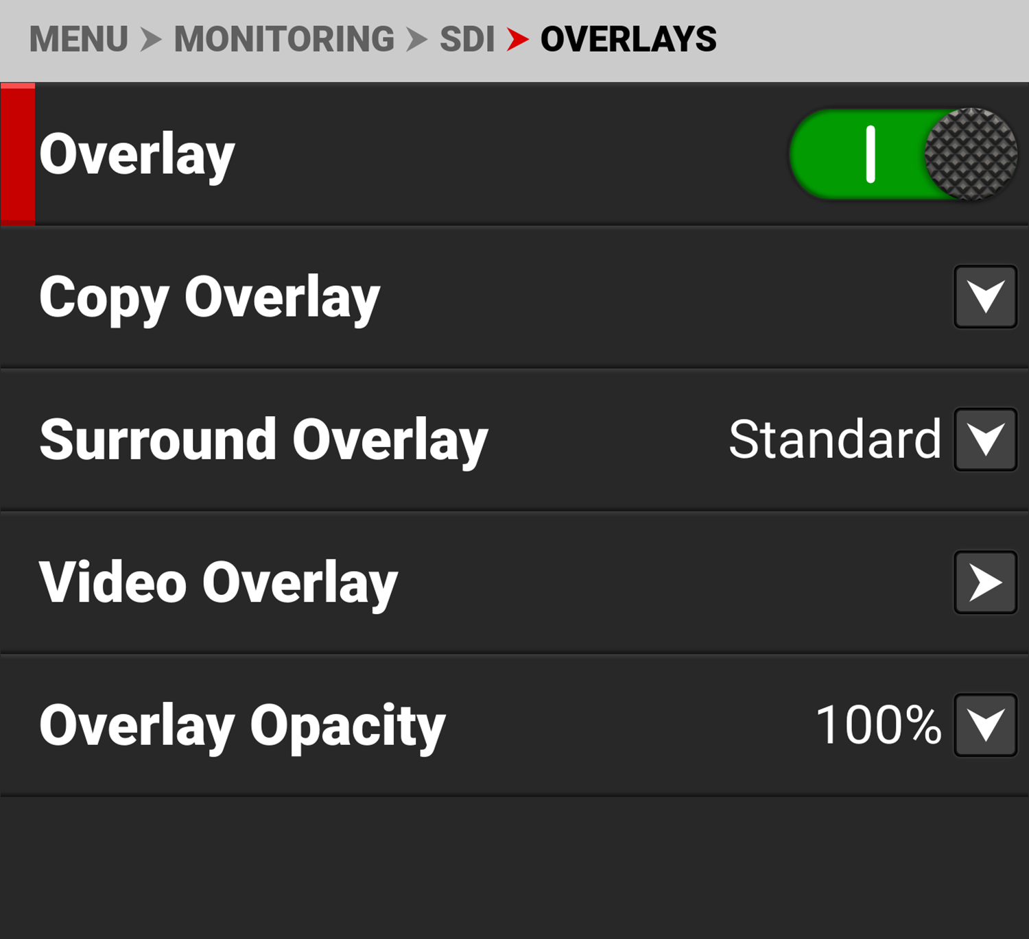 Use Surround Overlay to select one of the following SDI port overlay surrounds: